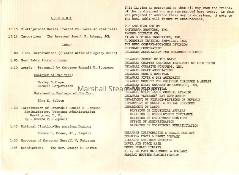 Agenda from the luncheon for the Employer of the Year award, 1970Entry/Object ID