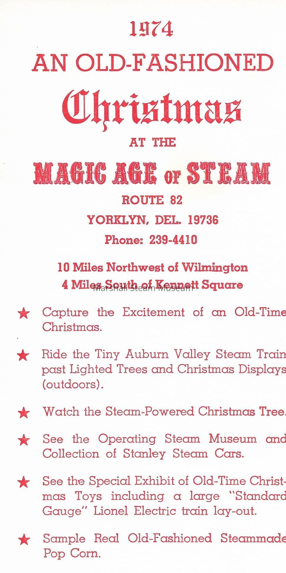 Rack card sued for Christmas Season events at Magic Age of Steam in 1974Collection