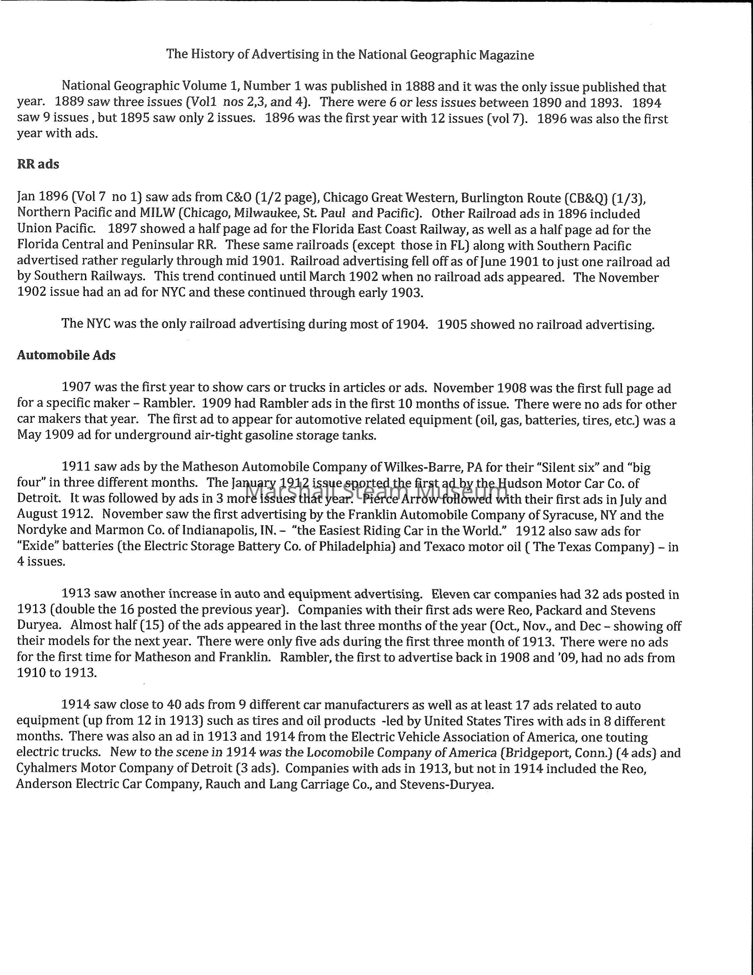 Ken Schwarz written history of advertising in National Geographic in the early 20th century