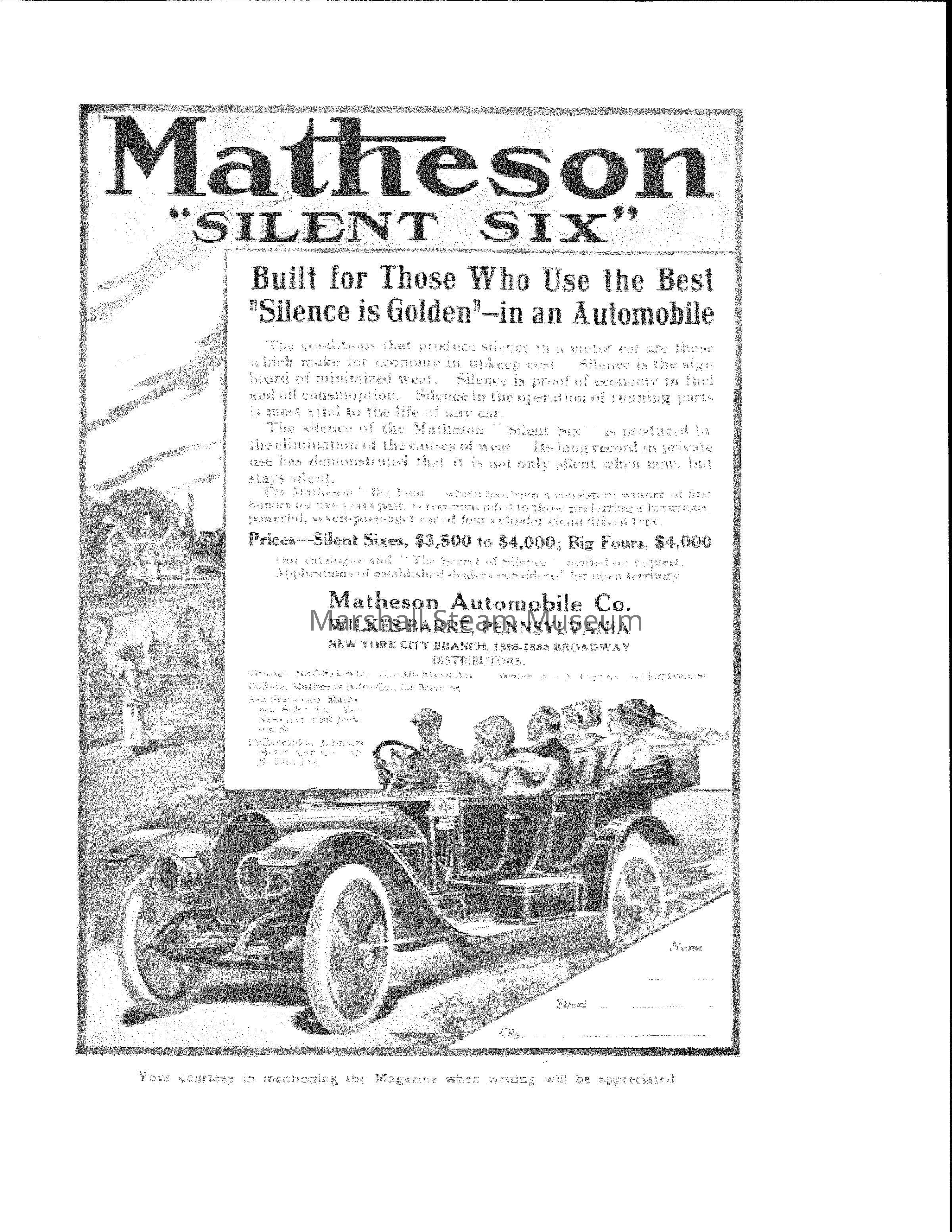 1911 Matheson Silent Six advertisement in May 1911 National Geographic