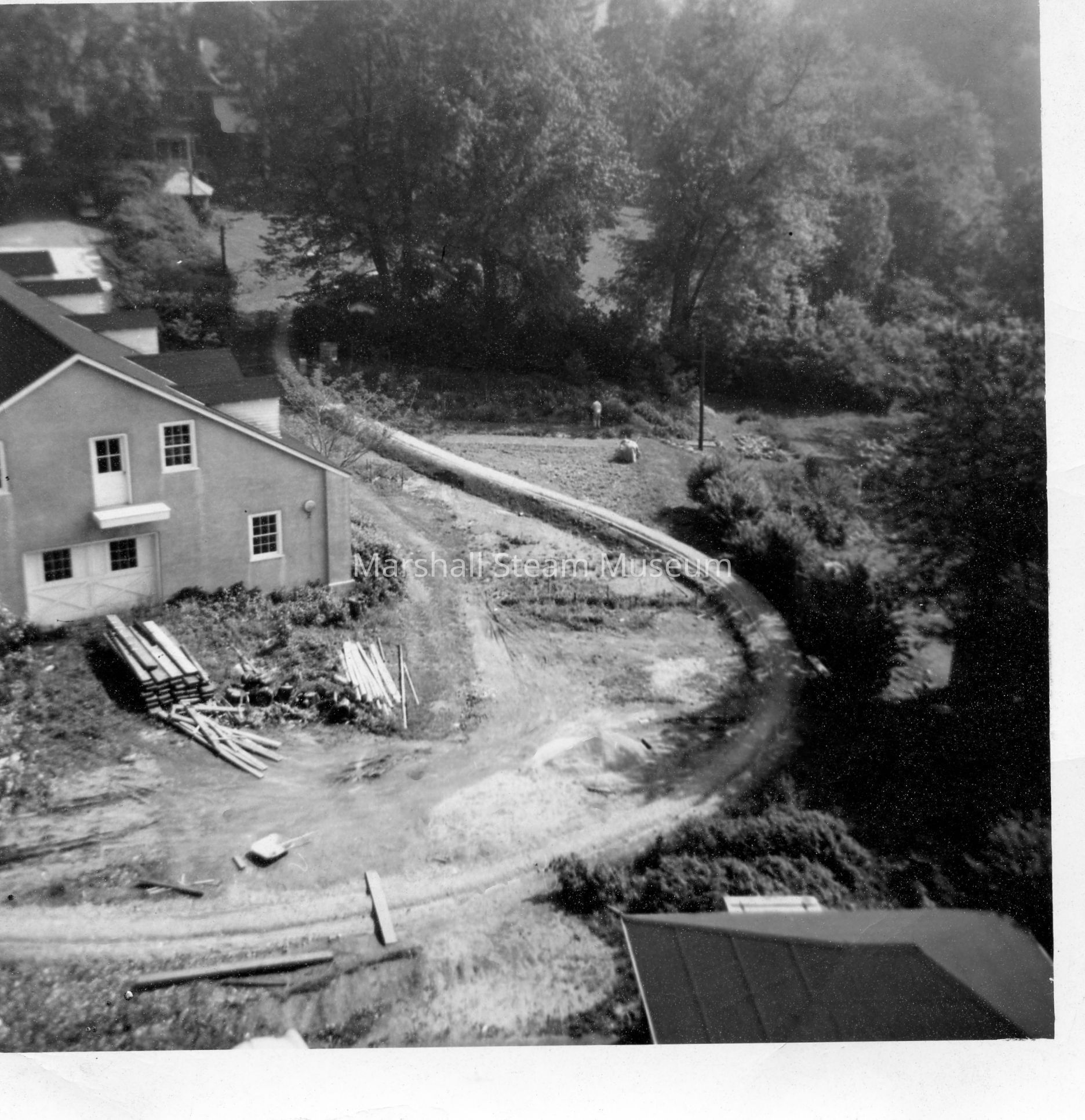 Aerial view of the museum and partially constructed railroad, 1960Entry/Object ID