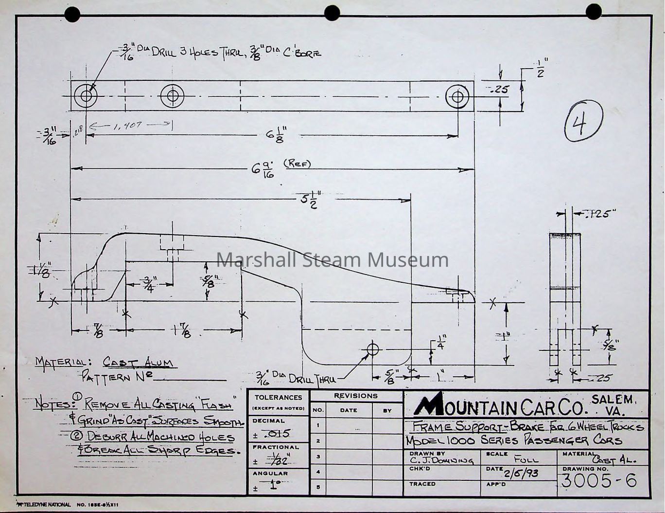 1993 blueprint of Mountain Car Company Model 1000 brake frame support