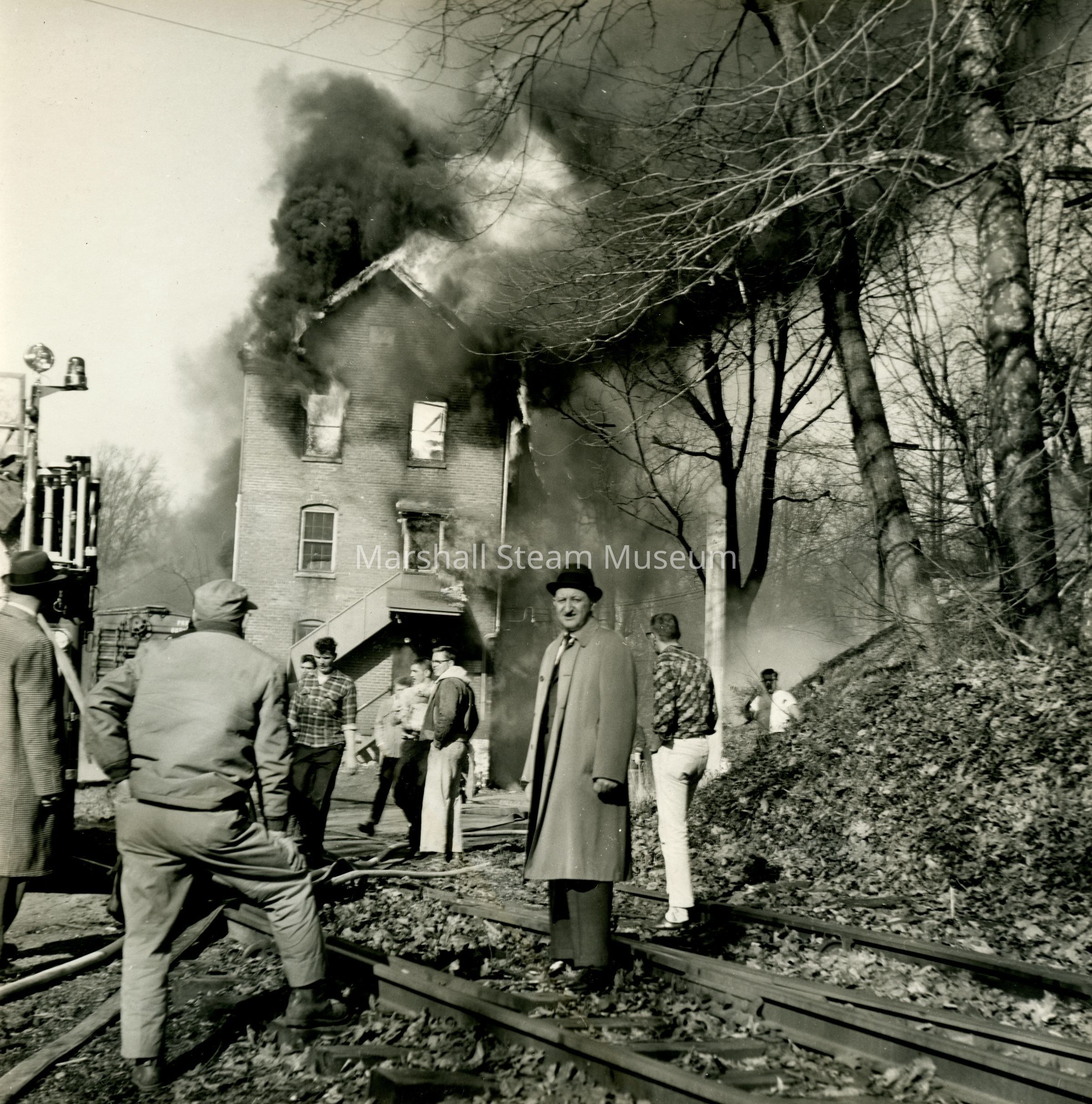 Crowell Tape Mill on fire with workers and bystanders, 1964Entry/Object ID