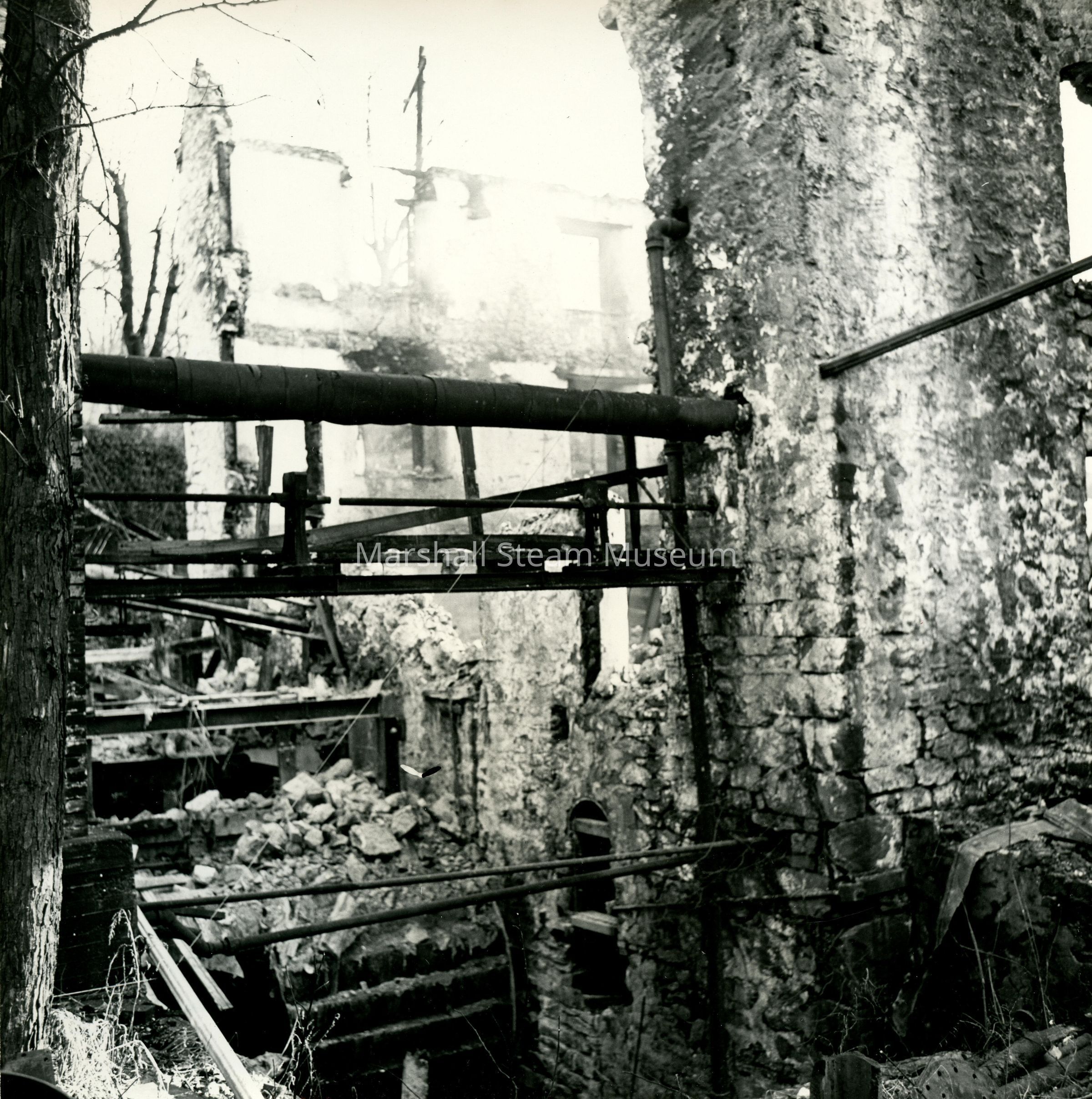 Crowell Tape Mill interior of building after fire, 1964Entry/Object ID