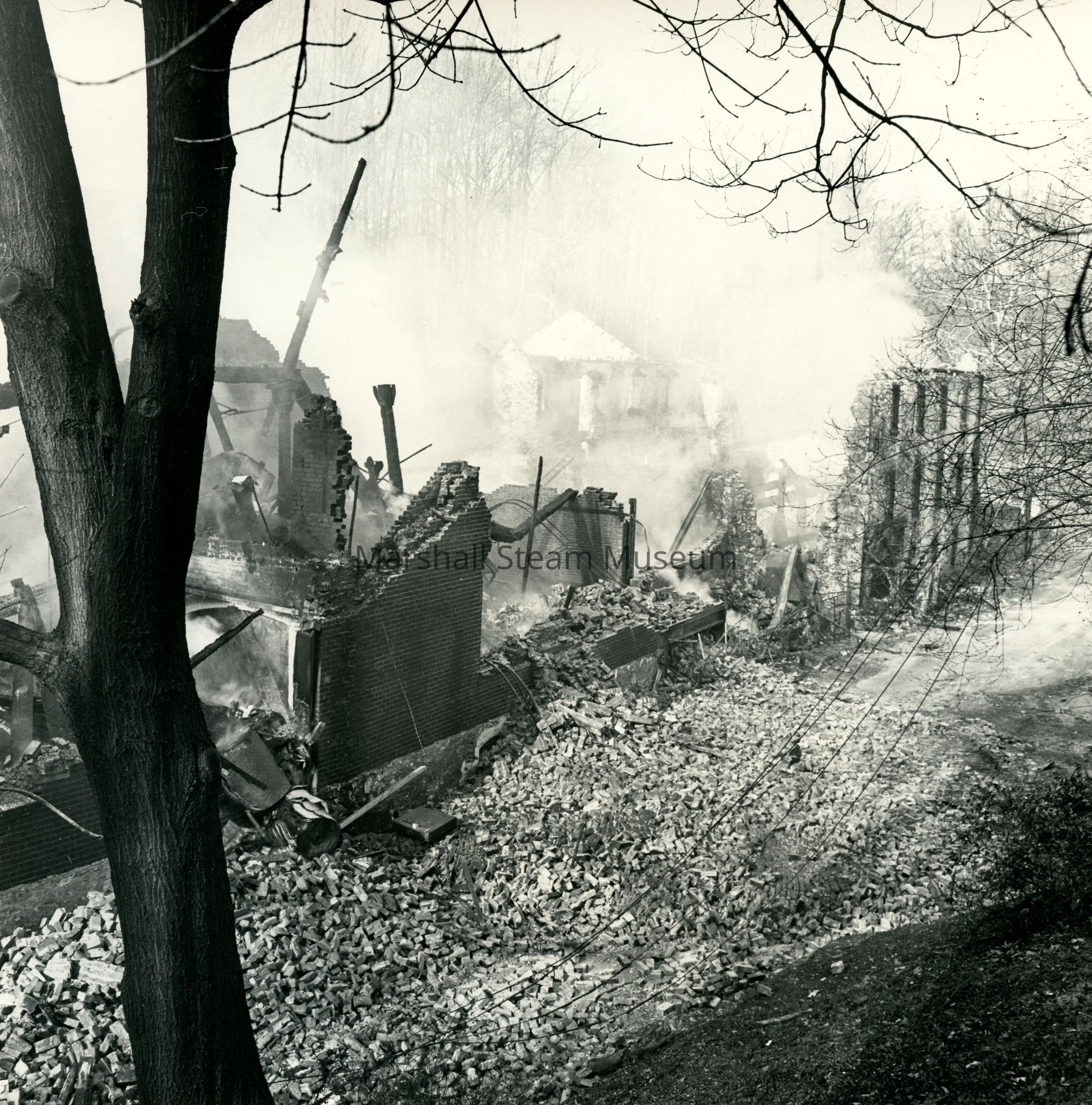 Crowell Tape Mill building after fire, 1964Entry/Object ID