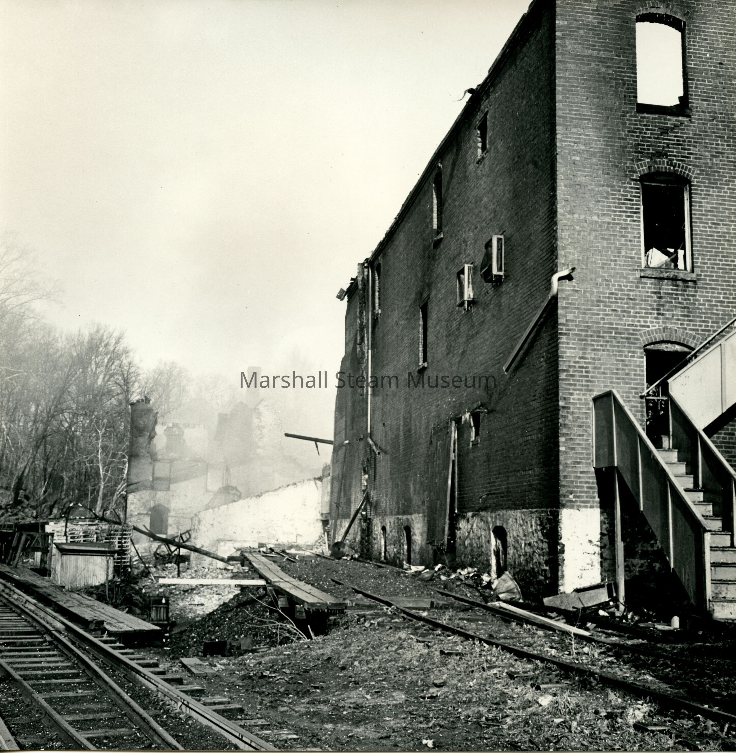Crowell Tape Mill main building after fire, 1964Entry/Object ID