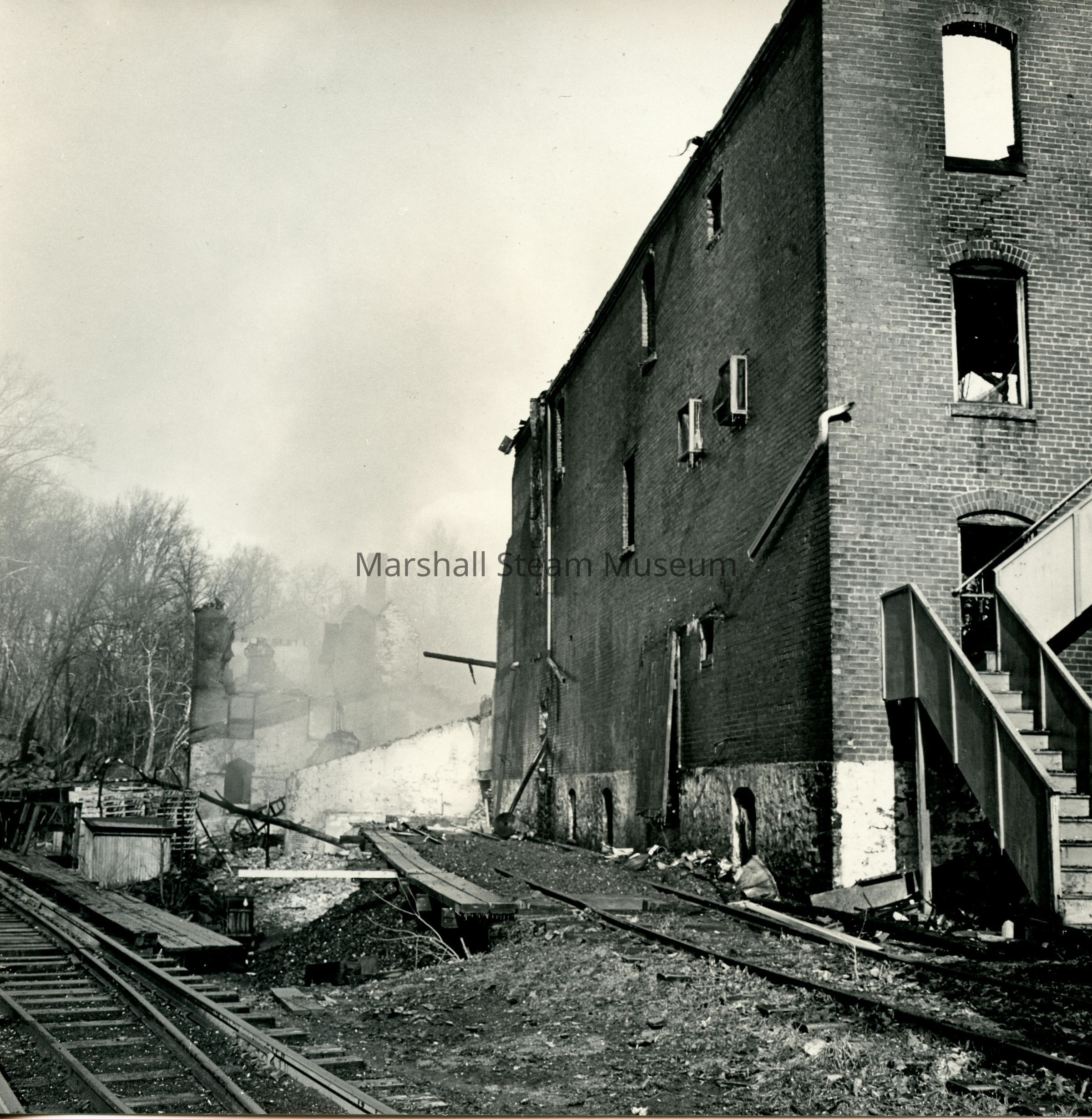 Crowell Tape Mill main building after fire, 1964Entry/Object ID
