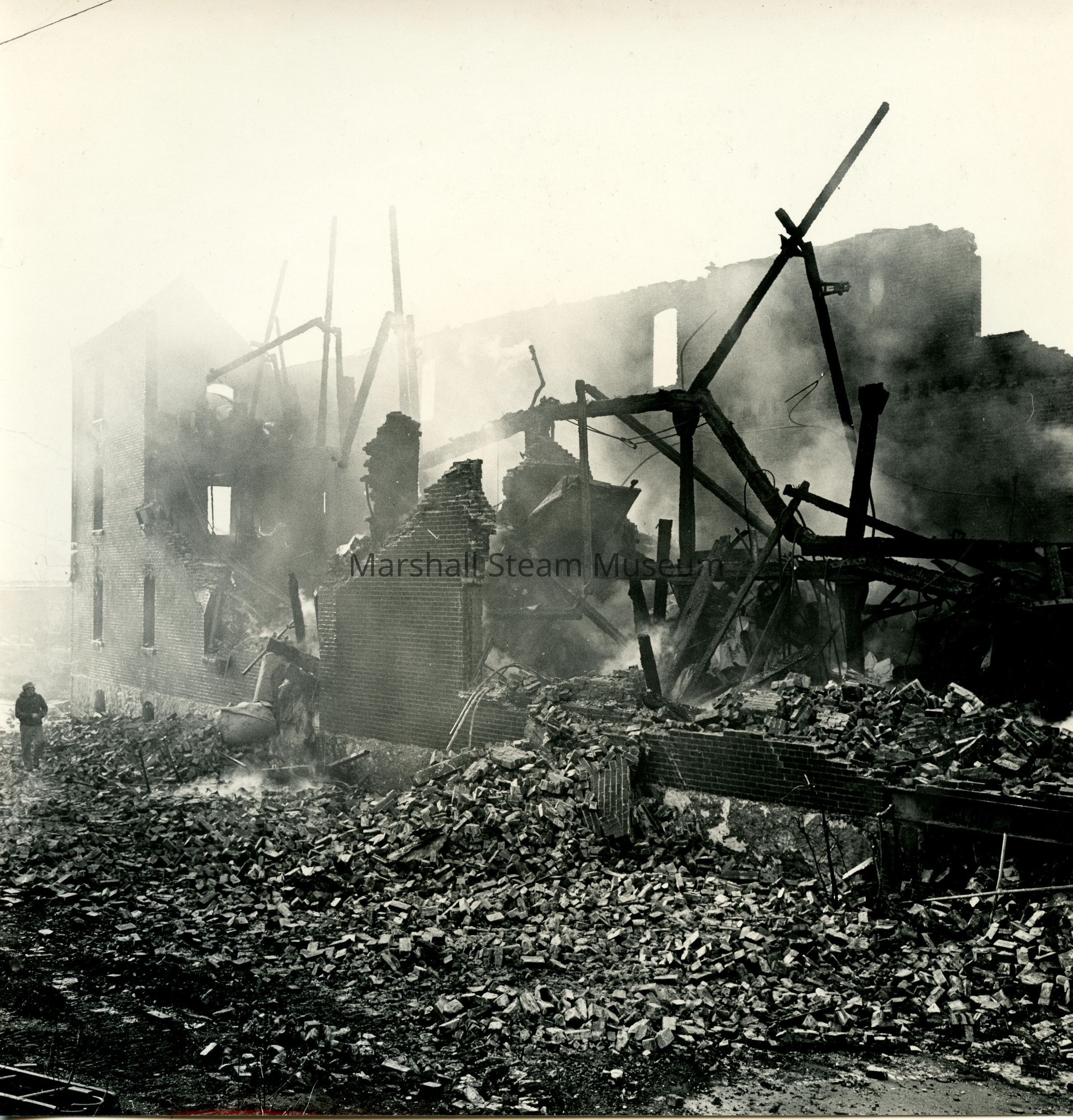 Crowell Tape Mill main building after fire, 1964Entry/Object ID