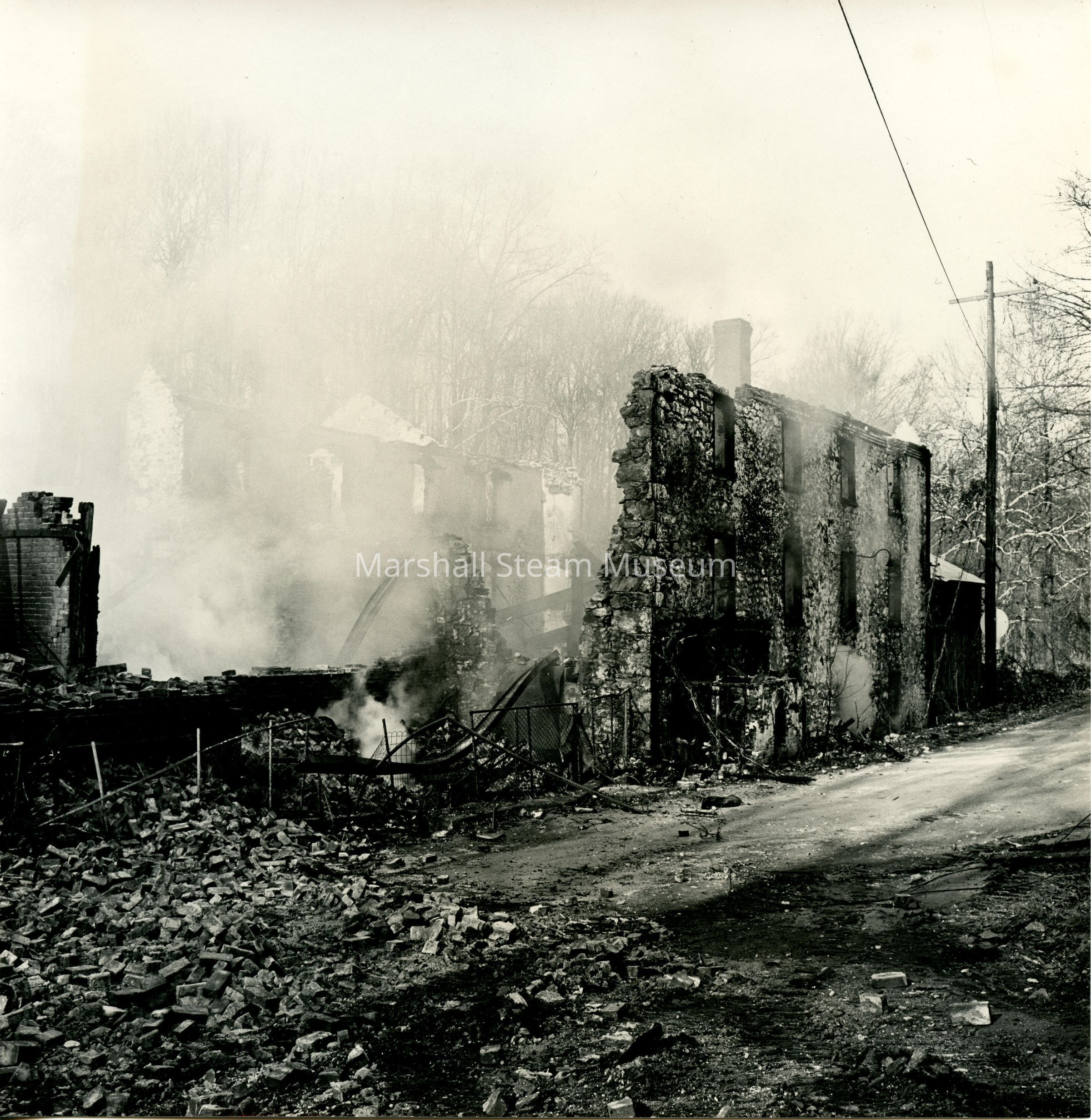 Crowell Tape Mill main building after fire, 1964Entry/Object ID