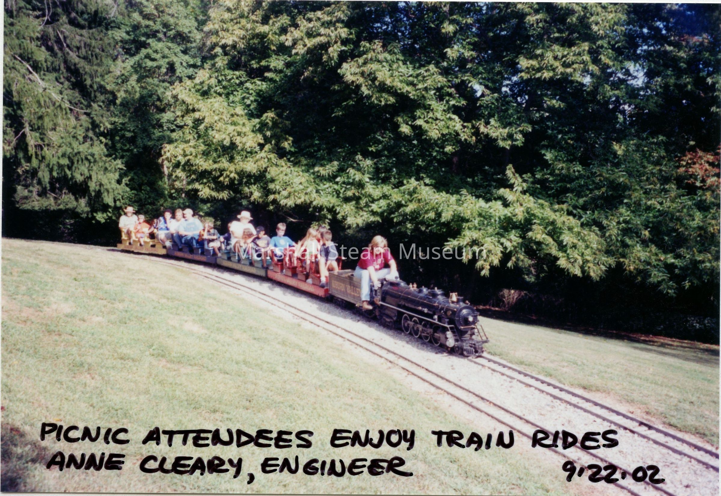 2002 - Anne Cleary engineering the steam train at the Steam Team picnicEntry/Object ID