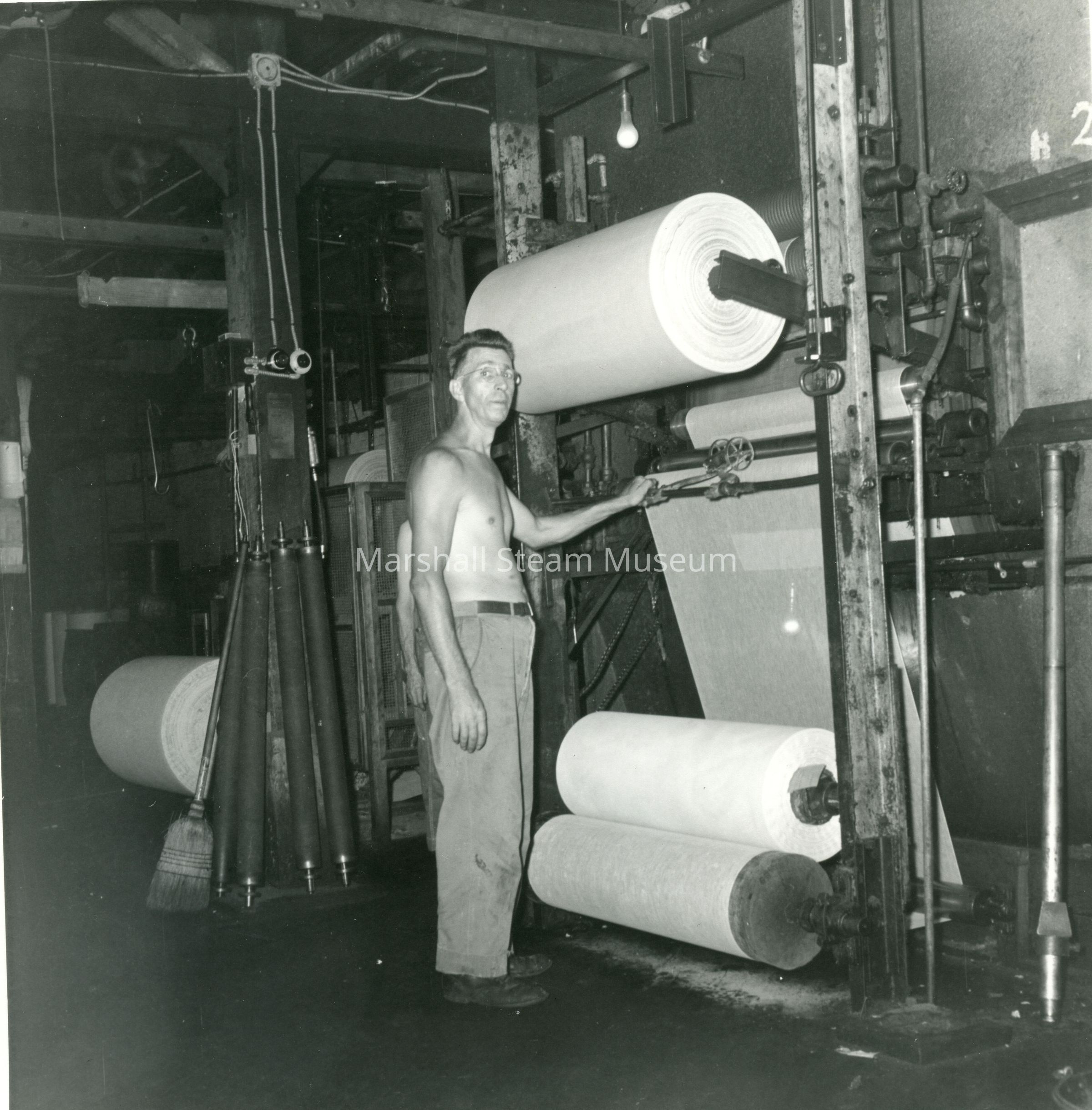 Lew Ravilious operating the Crowell Tape Mill splitter machineEntry/Object ID
