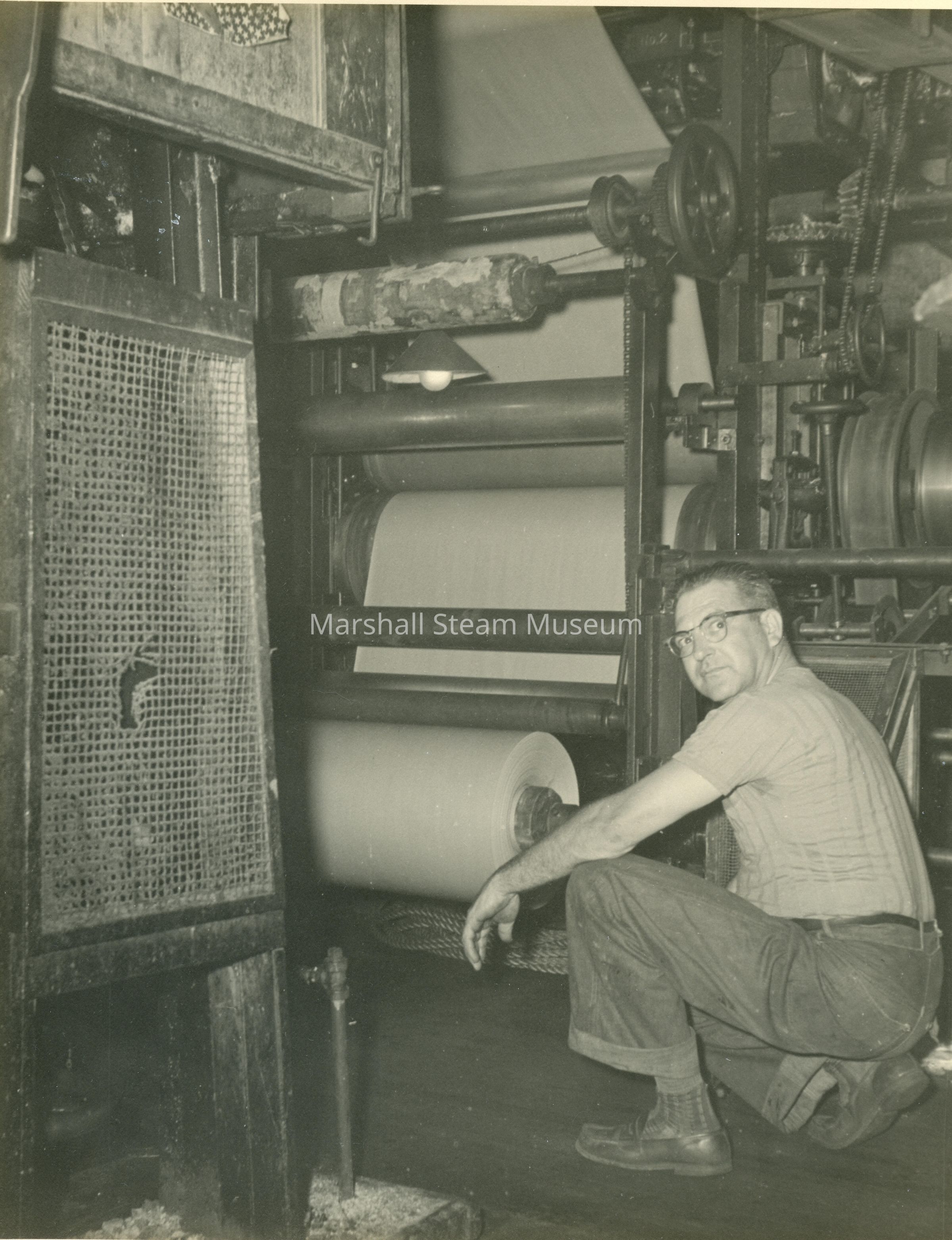 Watson Foote operating the Crowell Tape Mill gummer machineEntry/Object ID