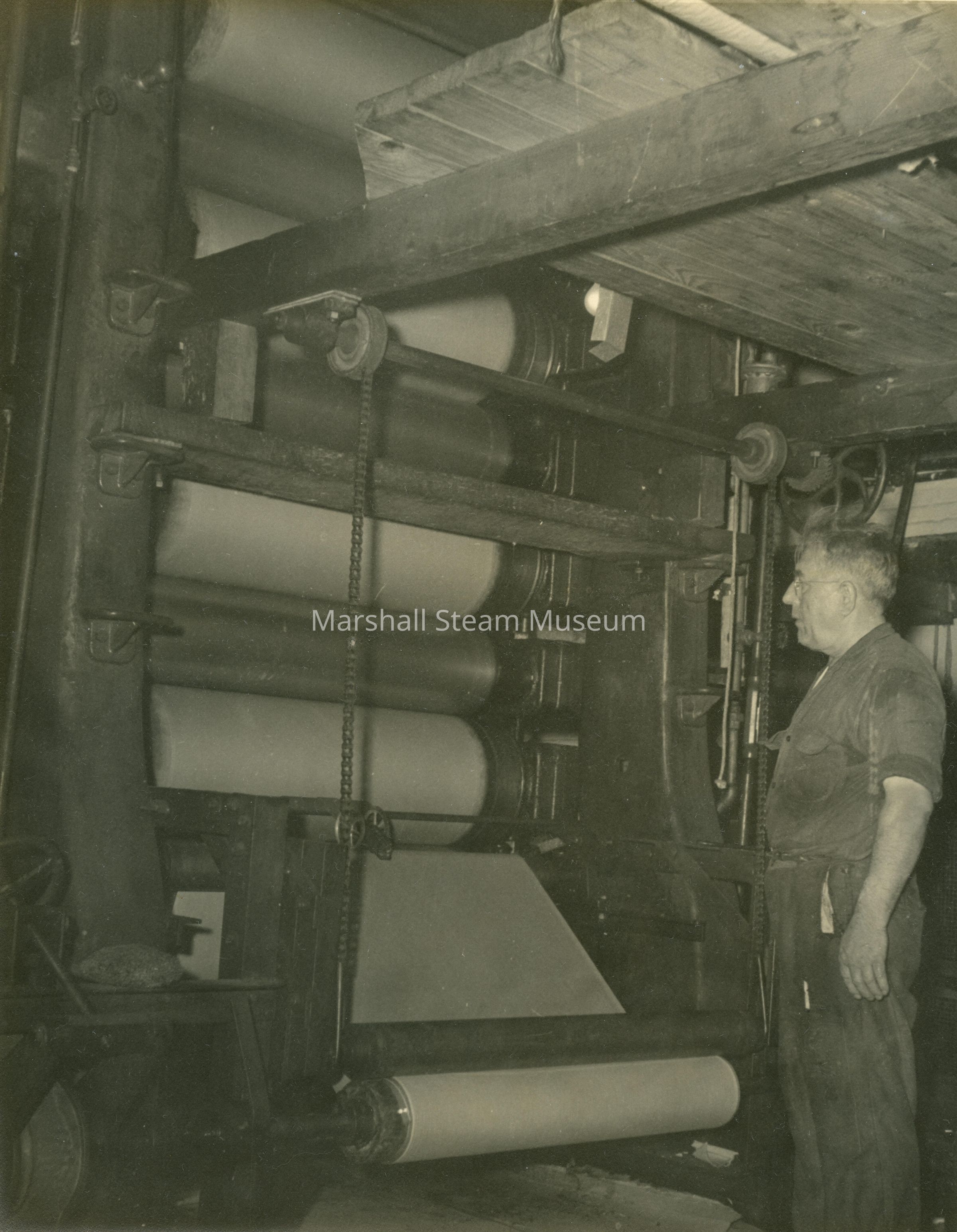 John Kosak operating the Crowell Tape Mill calendar to finish spit paperEntry/Object ID