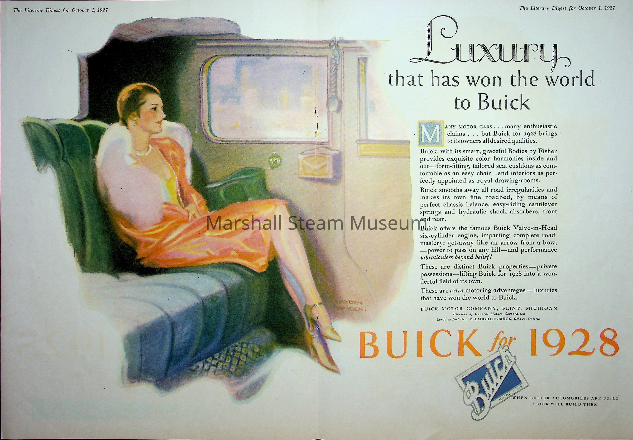 Two-page advertisement for Buick appearing in the October 1927 issue of "The Literary Digest"