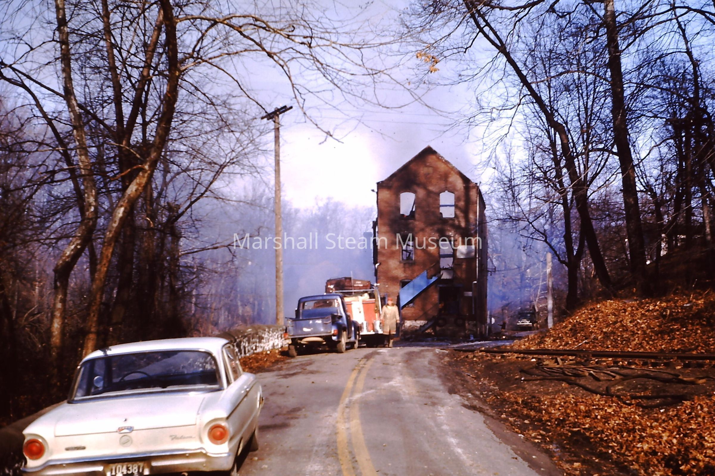 Crowell Tape main building after fire taken from Route 82, 1964Entry/Object ID