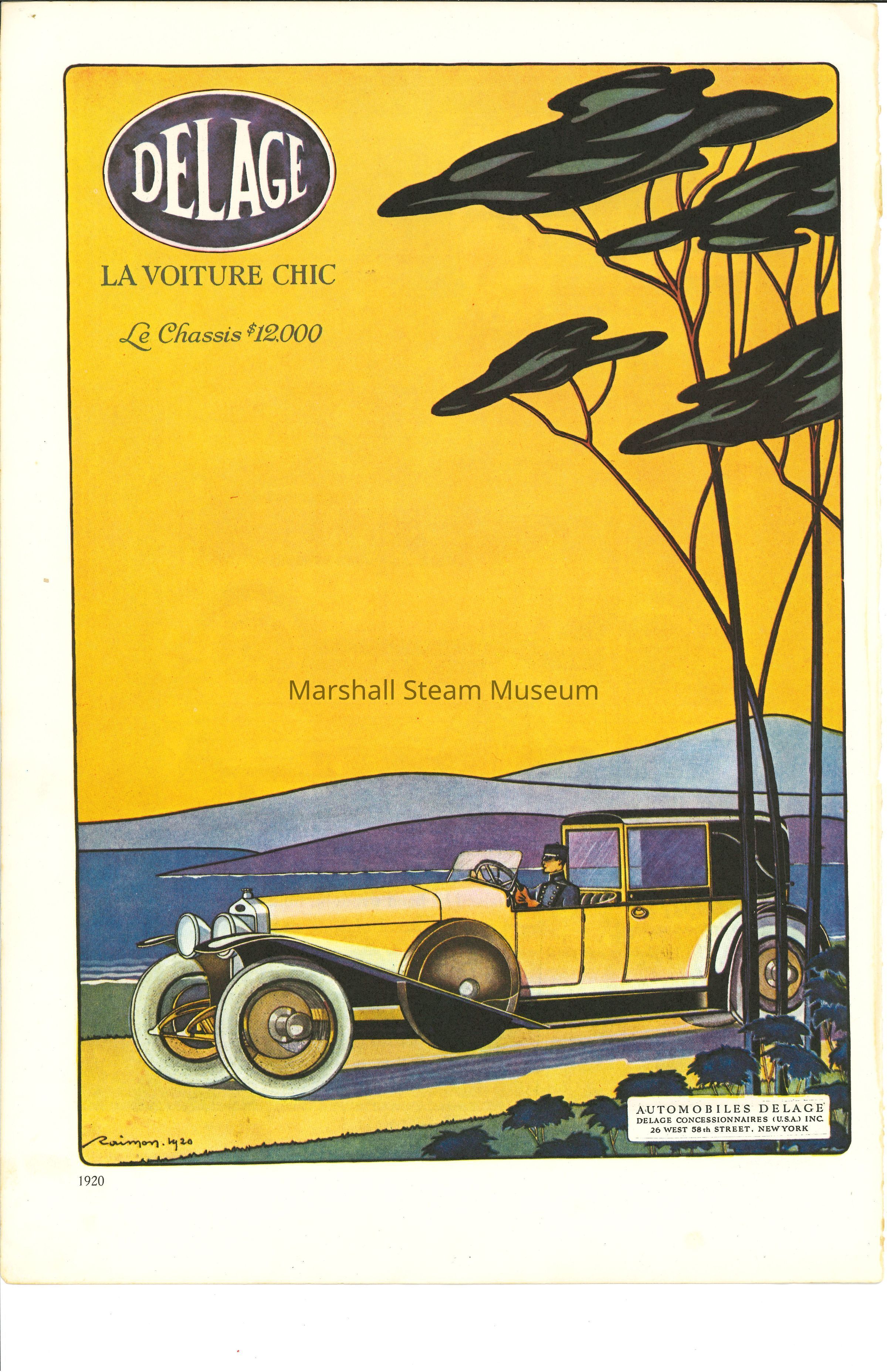 1920 advertisement for Delage scanned excerpt from "The Poster Book of Antique Auto Ads" by Howard Garrett