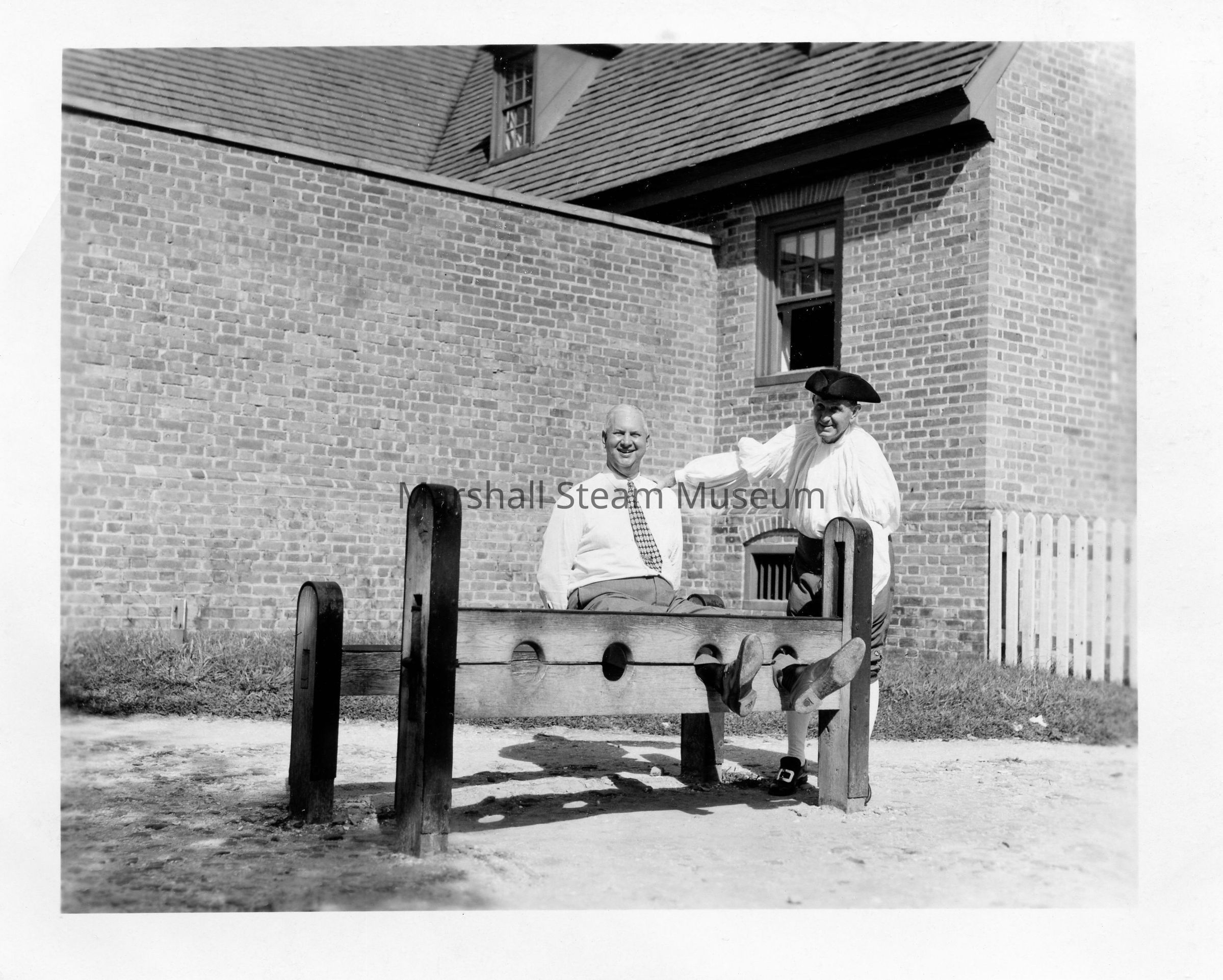 1949 Glidden Tour - Jerry Duryea in the stockade at Colonial Williamsburg (VA)Entry/Object ID
