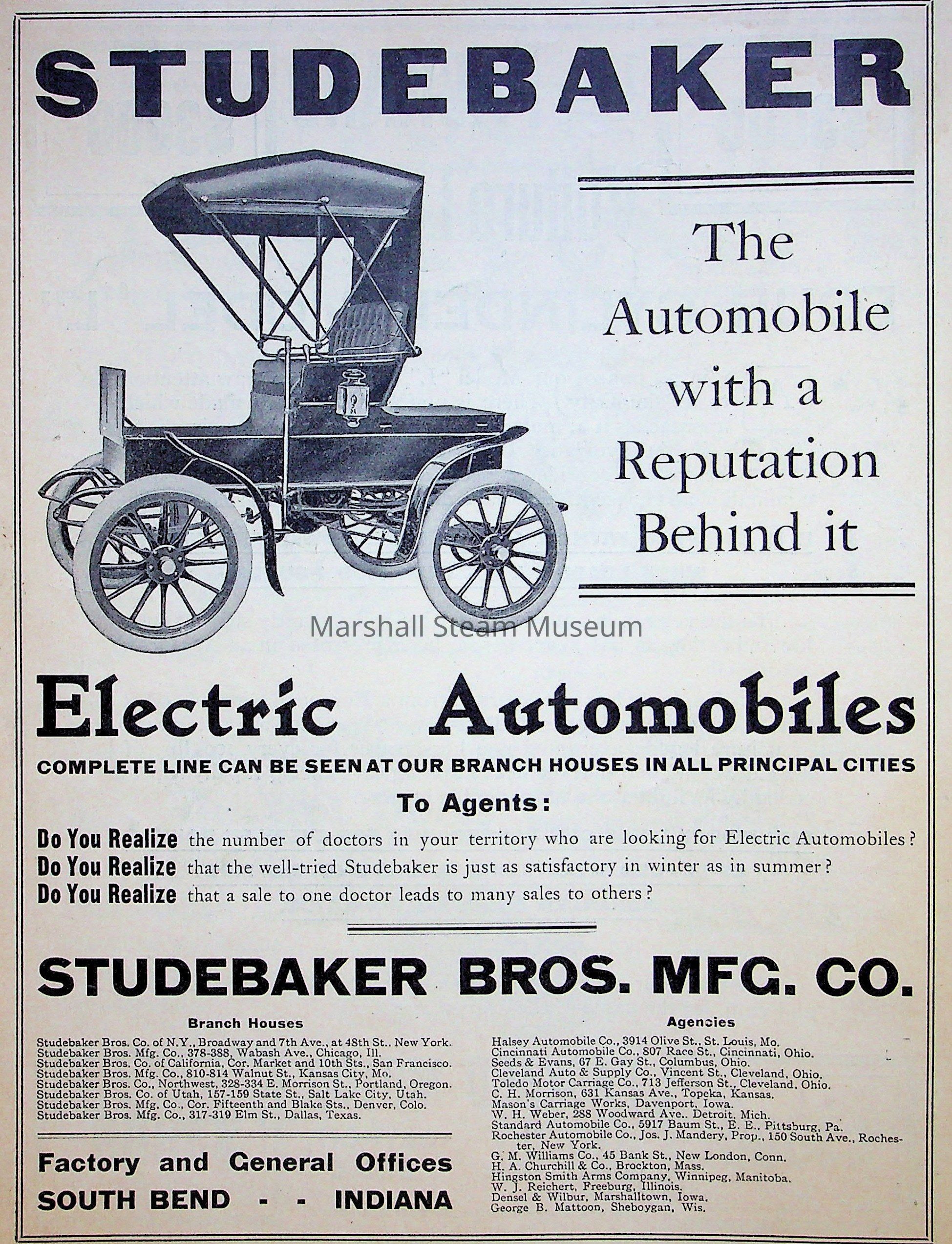 1903 advertisement for Studebaker scanned excerpt from December, 1903, issue of "The Automobile" magazine