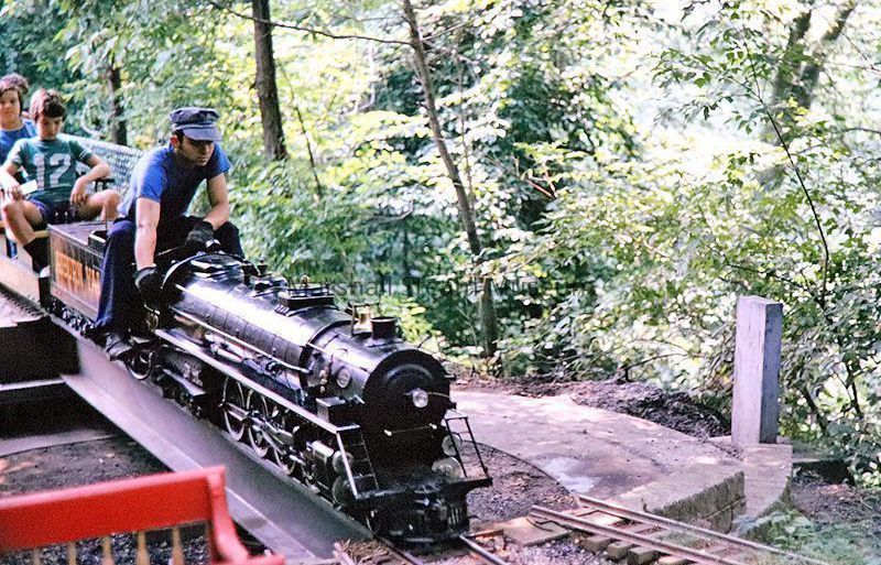 Engine 402 being operated by Larry Jensen behind the museum at Magic Age of Steam, 1973Entry/Object ID