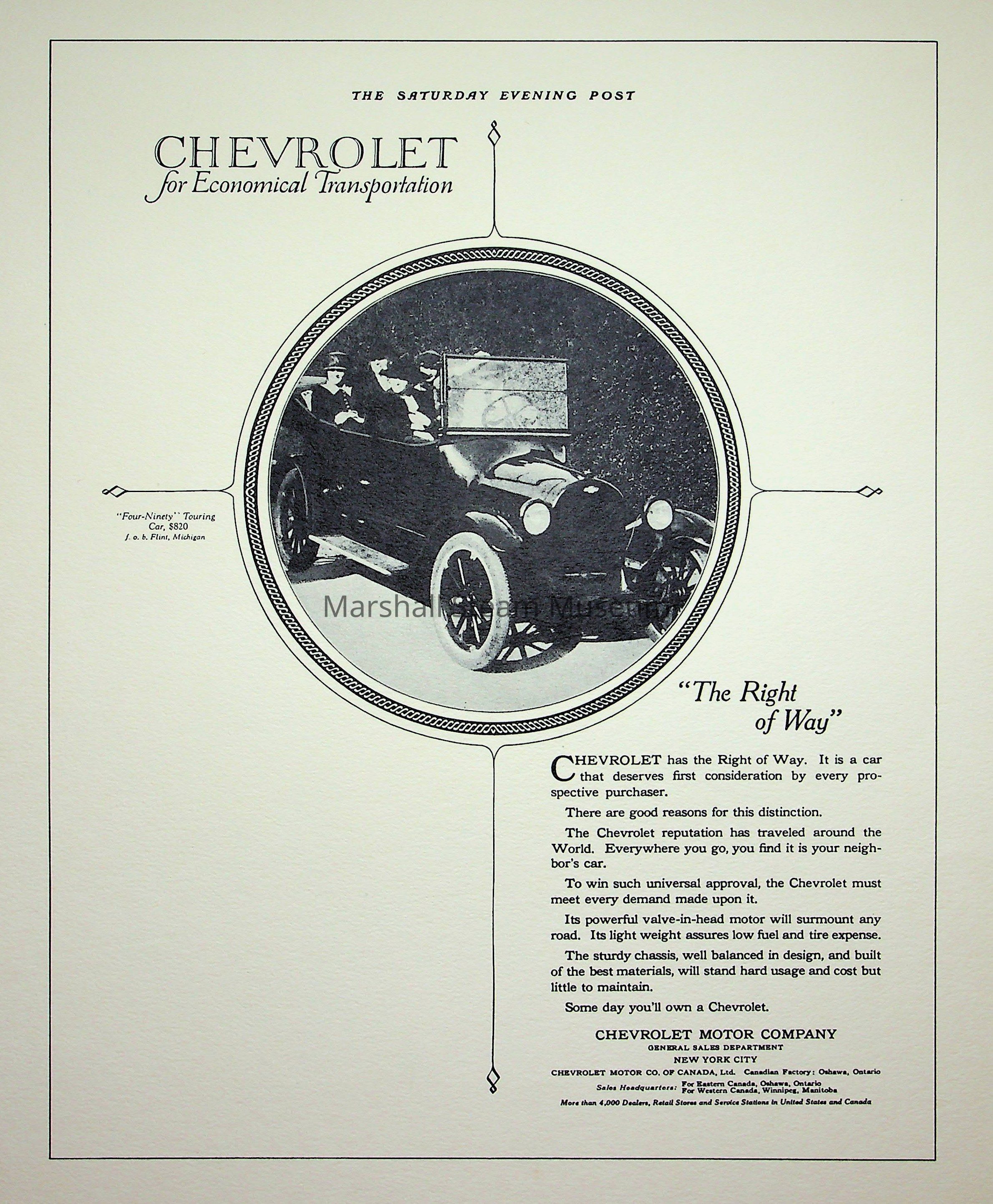 1921 advertisement for Chevrolet in "The Saturday Evening Post"