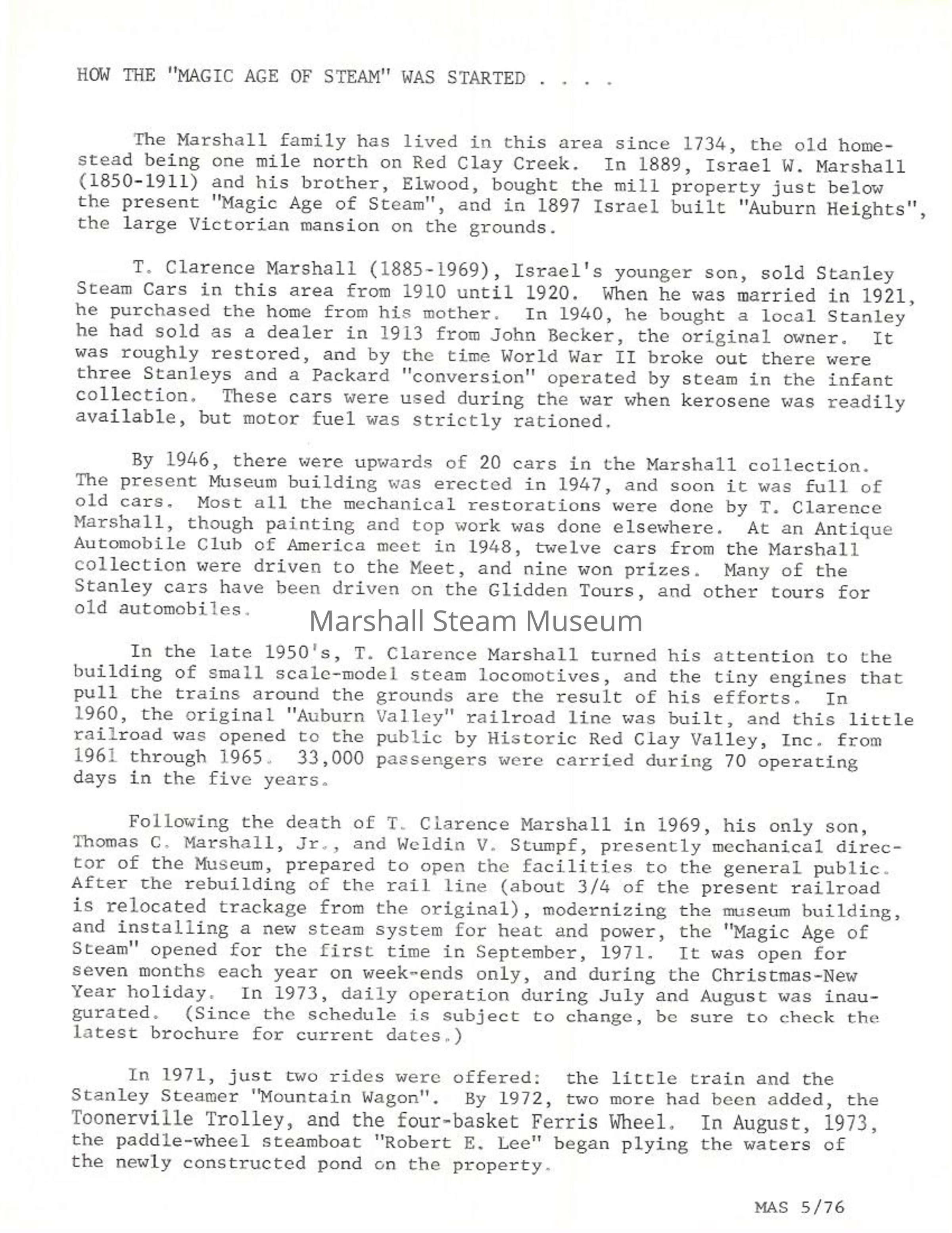 History of Magic Age of Steam written by Tom Marshall in May 1976