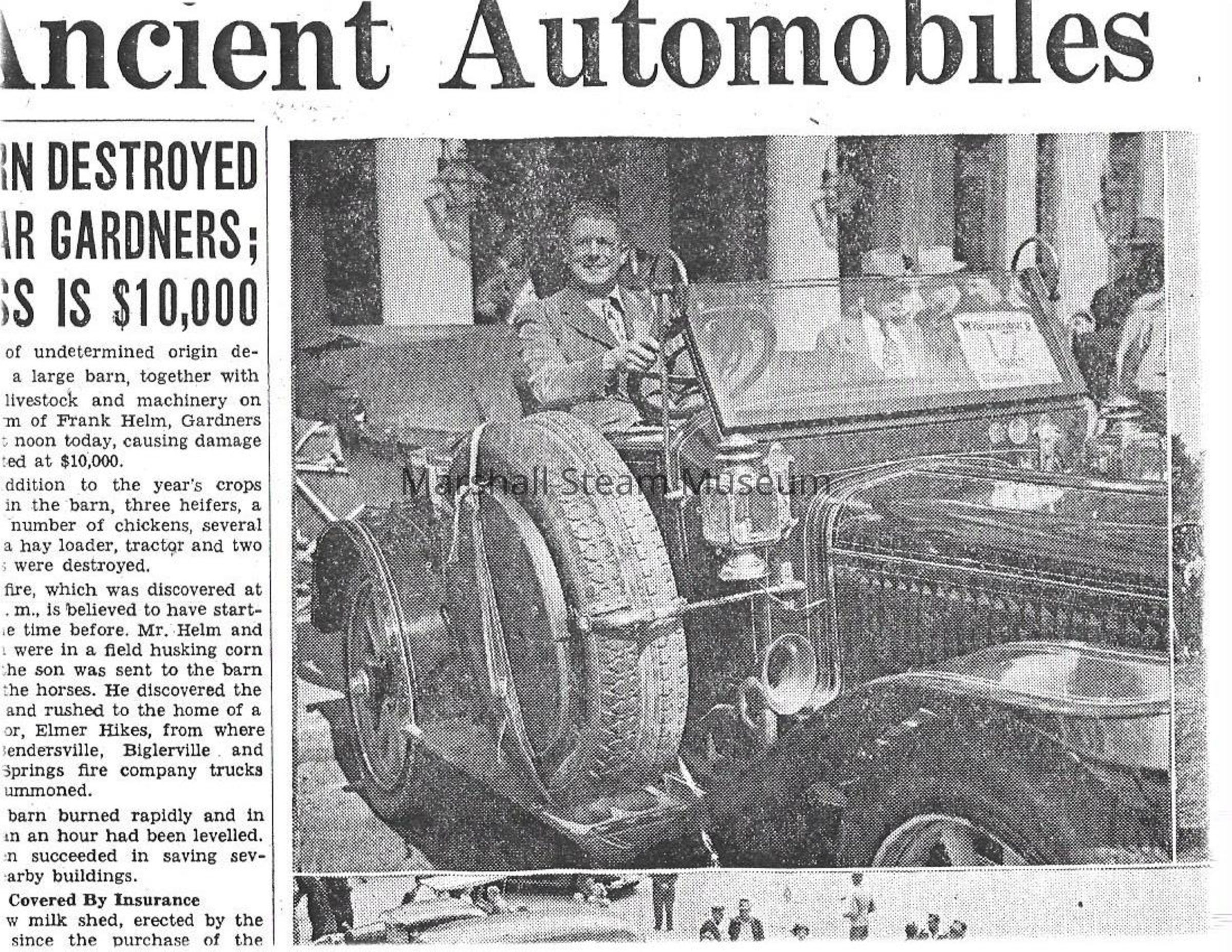 Photocopy of a clipping from a newspaper with photo of a car from tourGeneral Notes