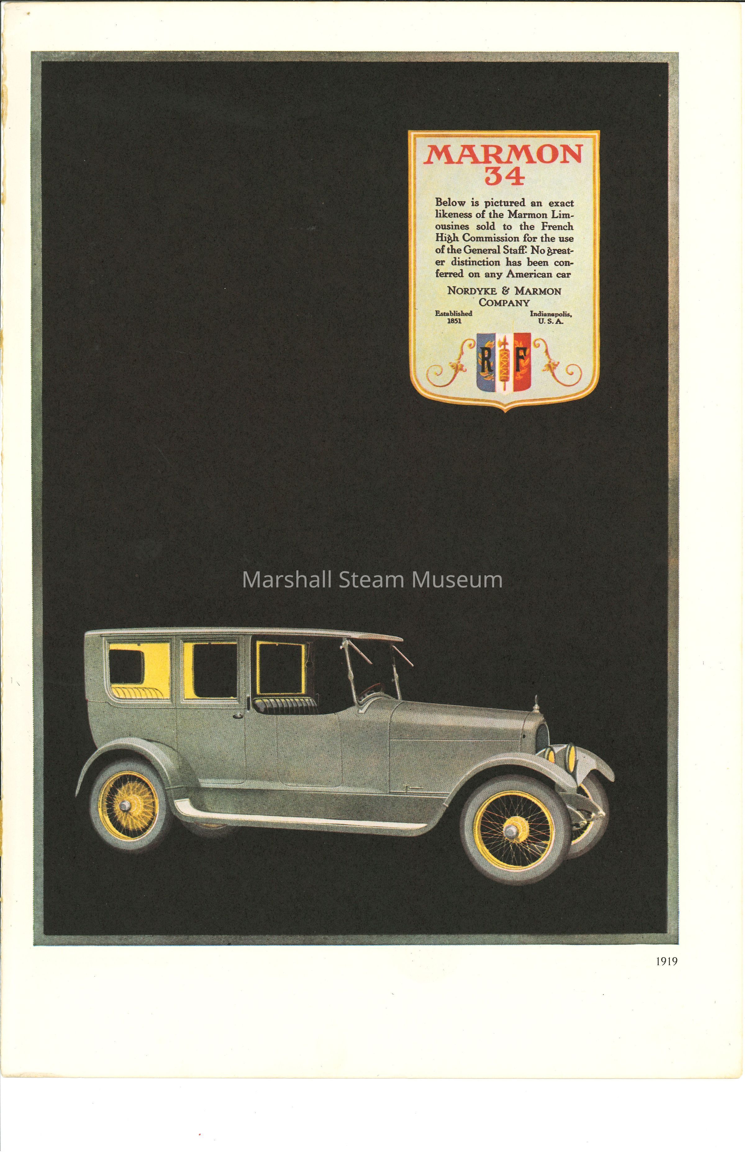 1919 advertisement for Marmon scanned excerpt from "The Poster Book of Antique Auto Ads" by Howard Garrett