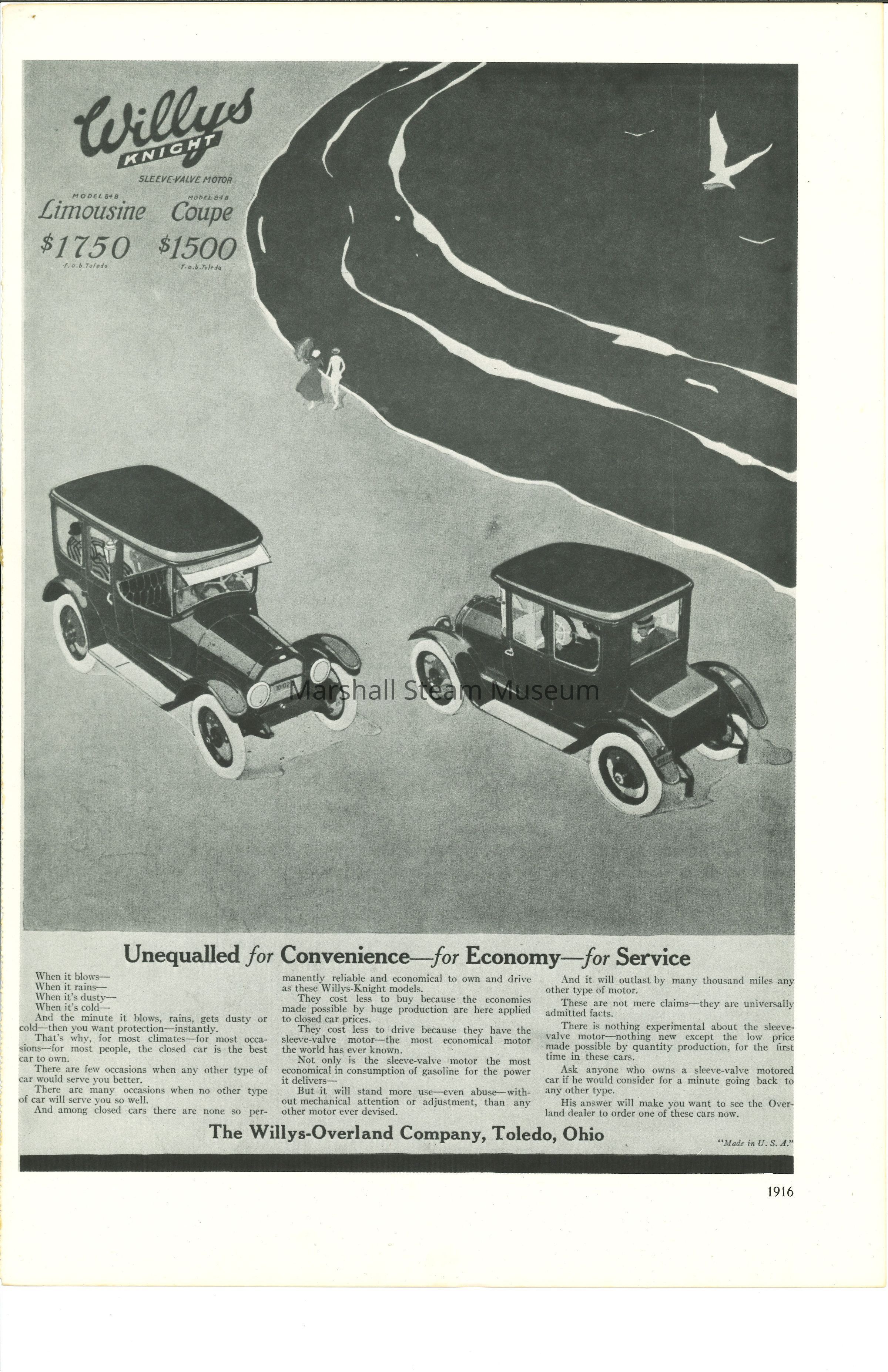1916 advertisement for Willys-Overland CompanyEntry/Object ID