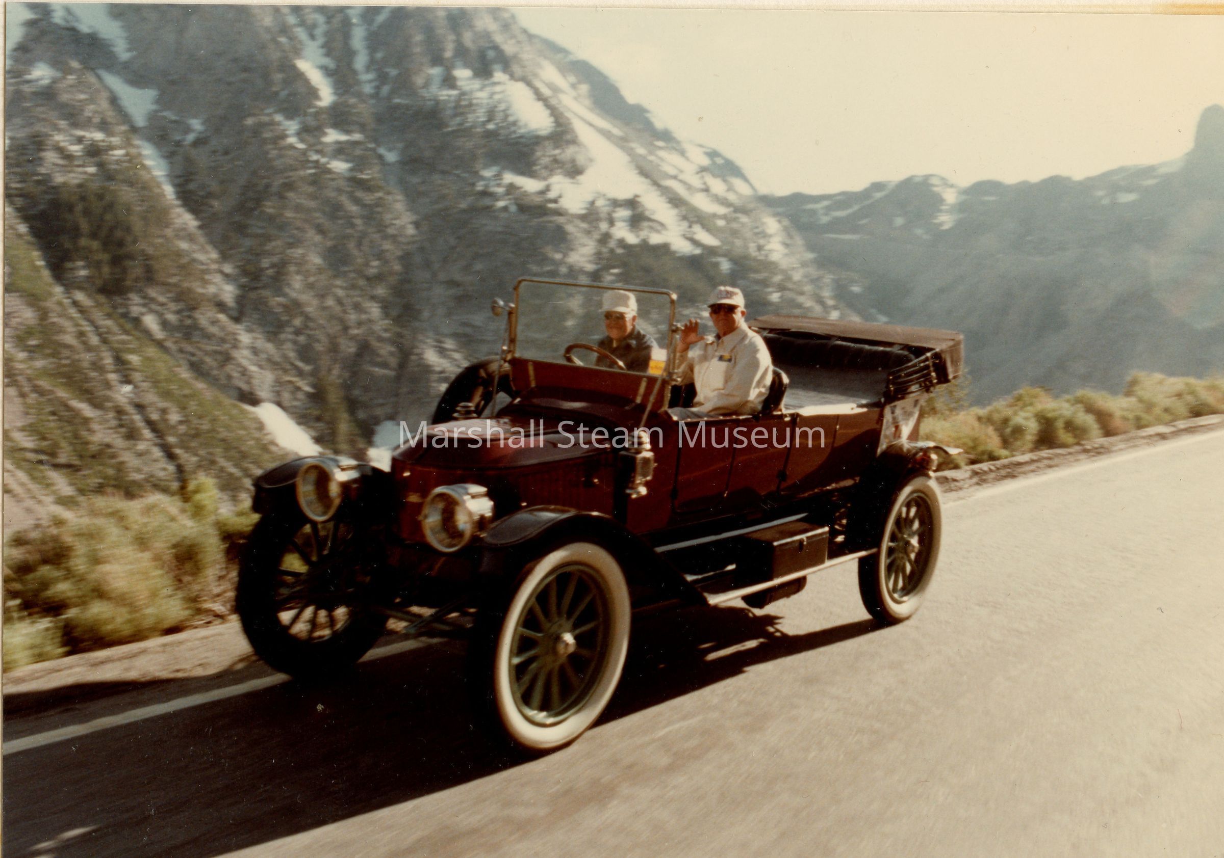 1982 Transcontinental Tour - Thomas C Marshall, Jr., and Lindsay Greenplate in the 1912 Stanley Model 87 descending the Tioga Pass near Yosemite National Park, CAEntry/Object ID