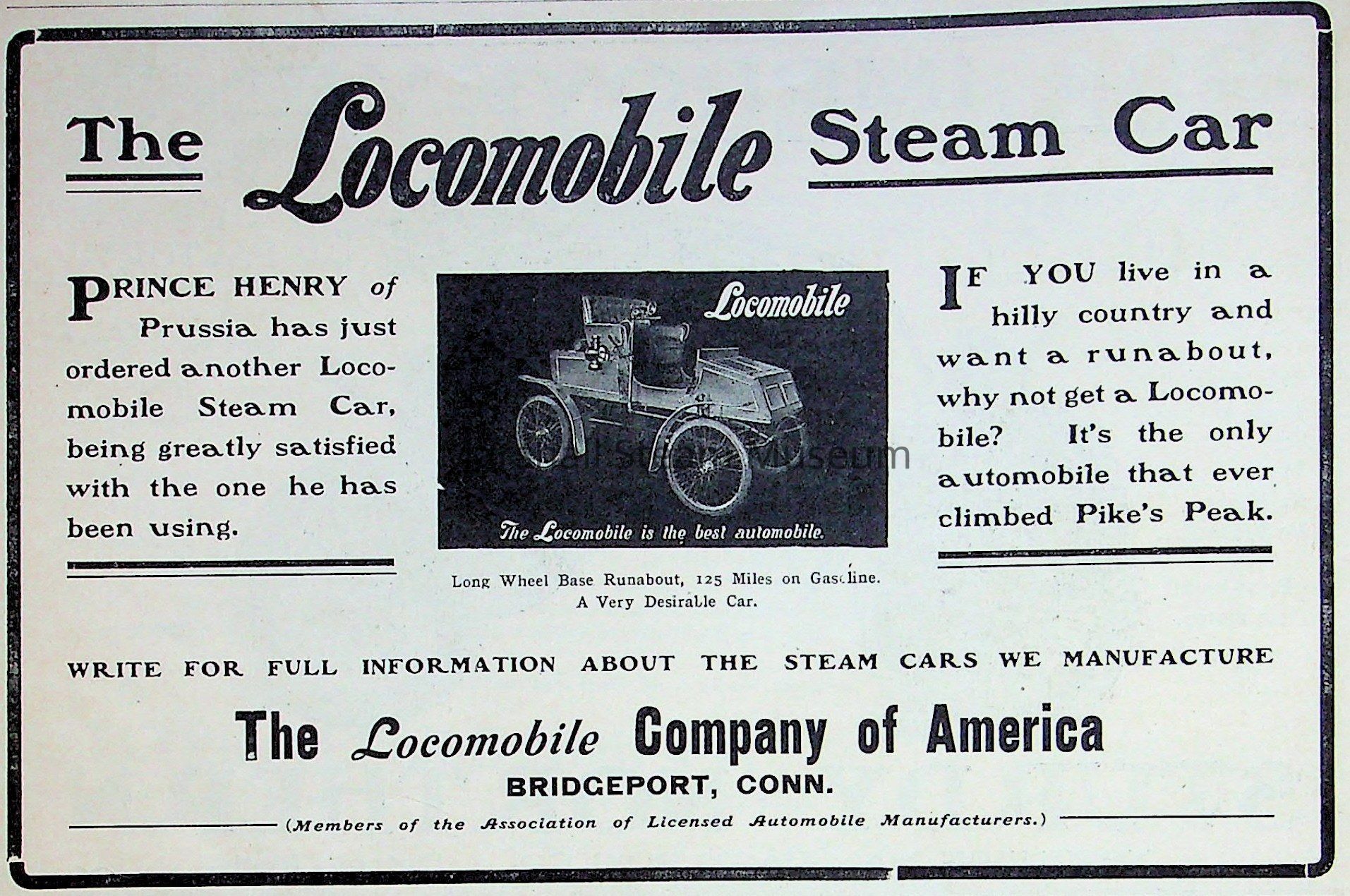1903 advertisement for Locomobile (steam-powered)Entry/Object ID