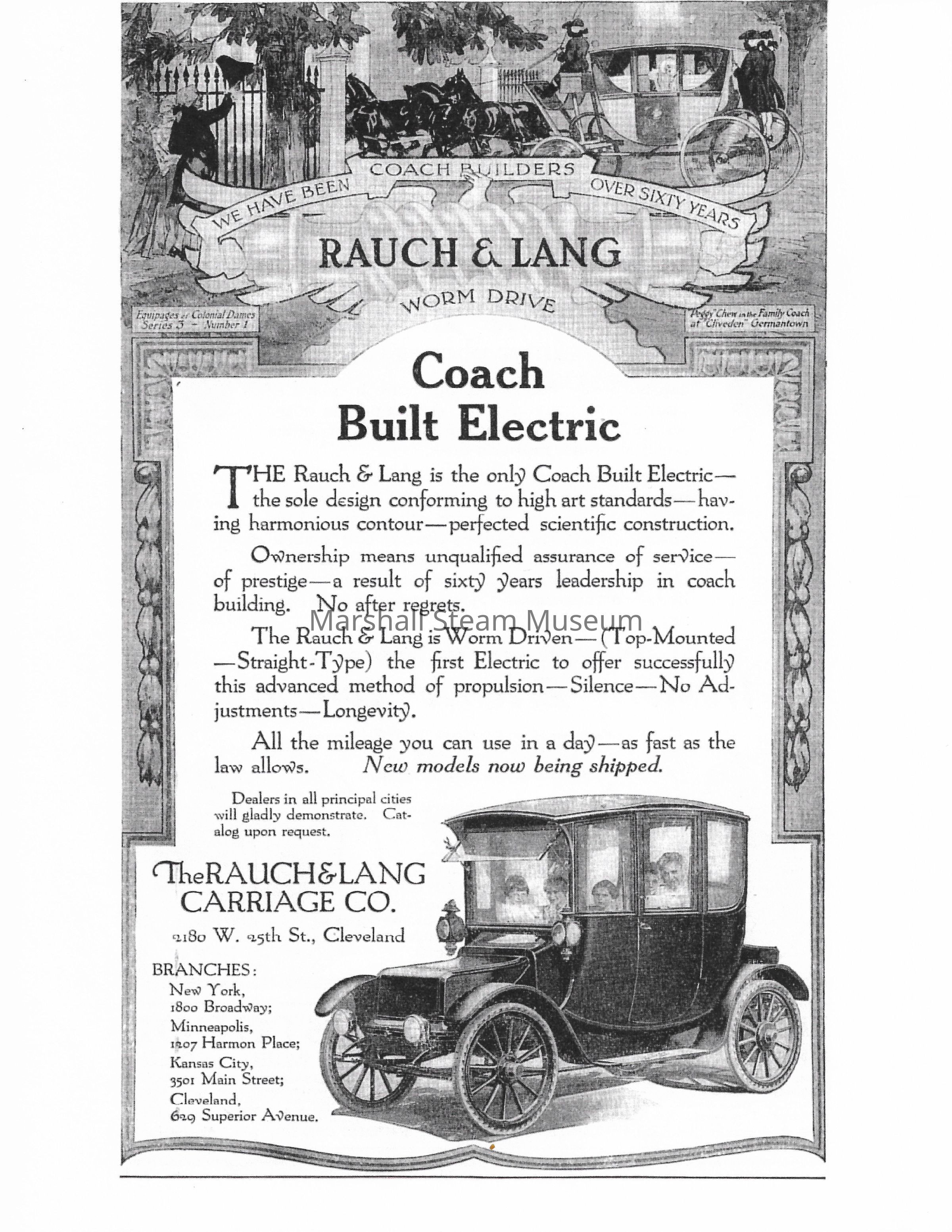 Photocopy of an ca.1915 Rauch and Lang Electric Coach advertisement
