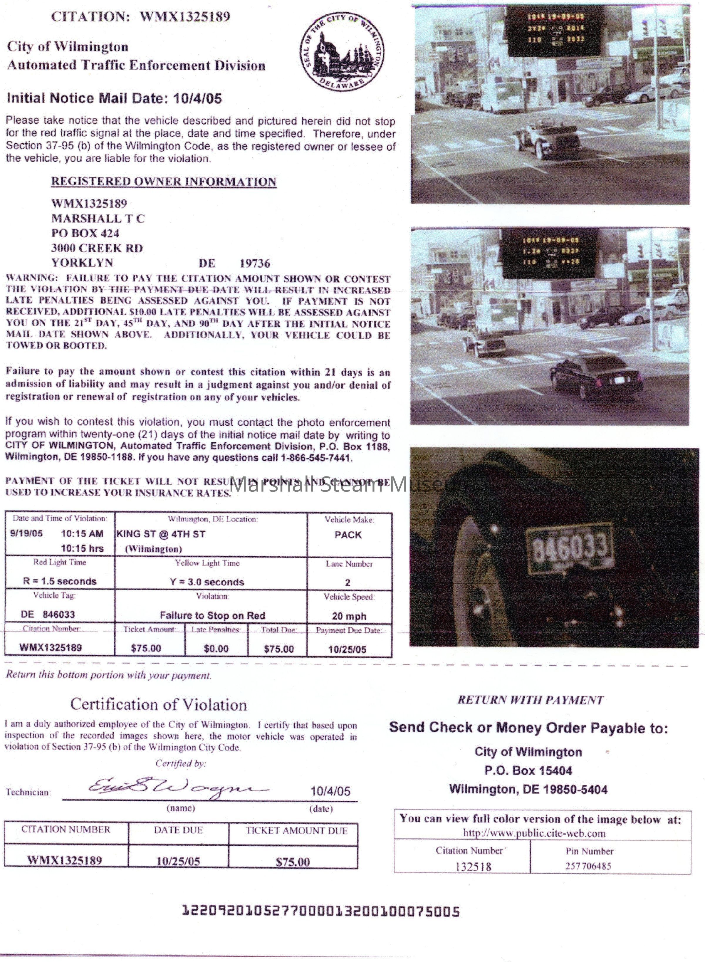 2005 - traffic citation of a Stanley in downtown Wilmington