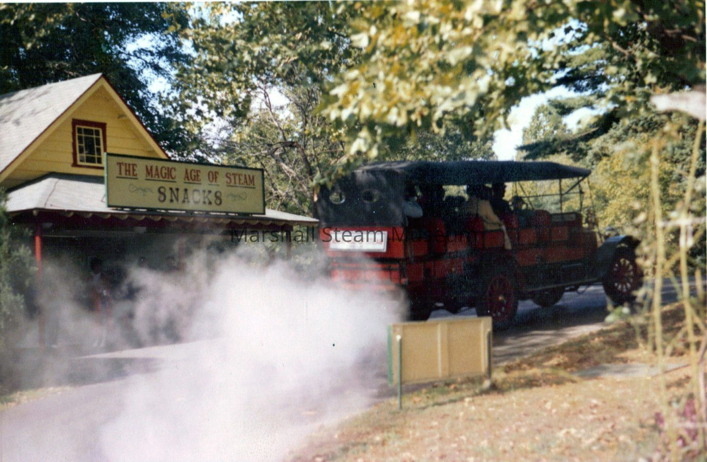 Stanley Mountain Wagon passing by the Magic Age of Steam snack bar, 1970sEntry/Object ID
