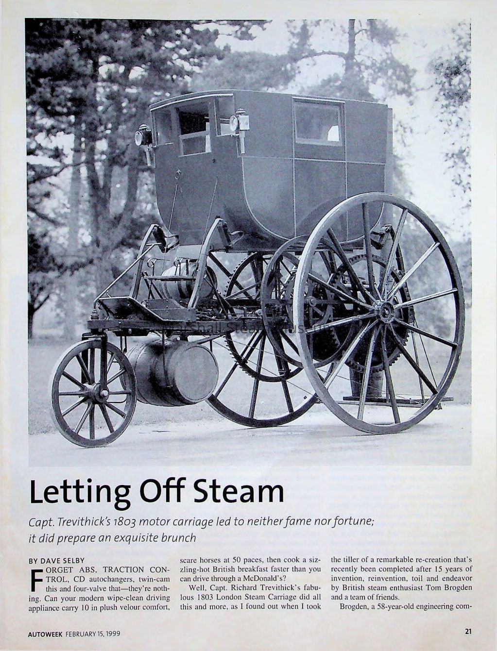 Clipping on the 1803 London Steam Carriage from "Autoweek Magazine", 1999