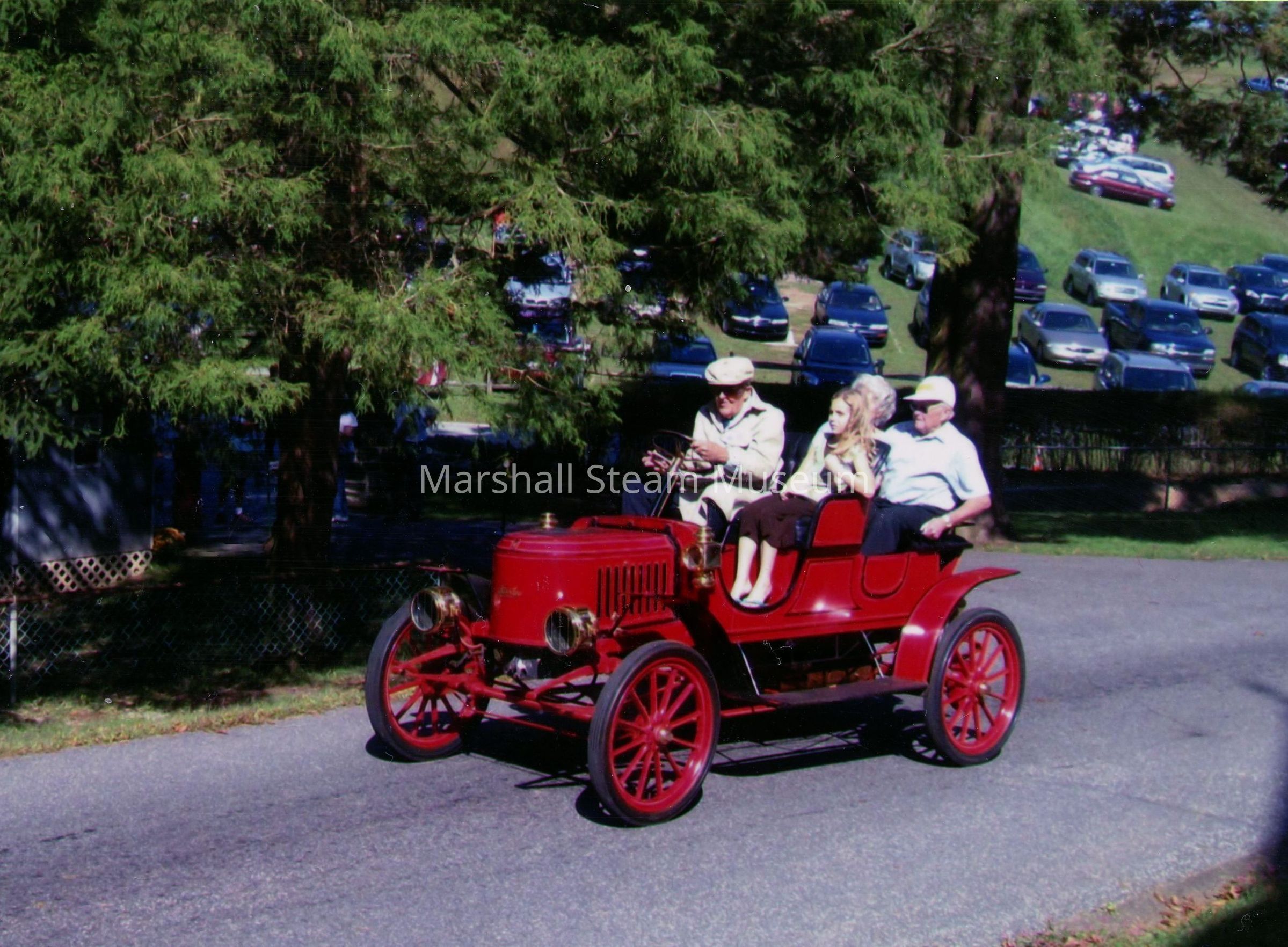 Tom Marshall driving visitors in the 1908 Stanley Model EX