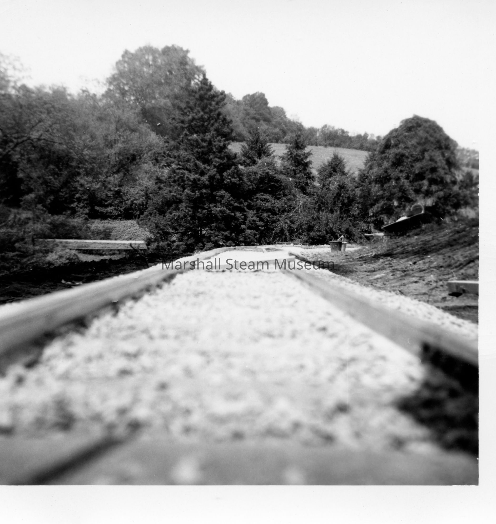 Track being leveled on the front lawn, 1960