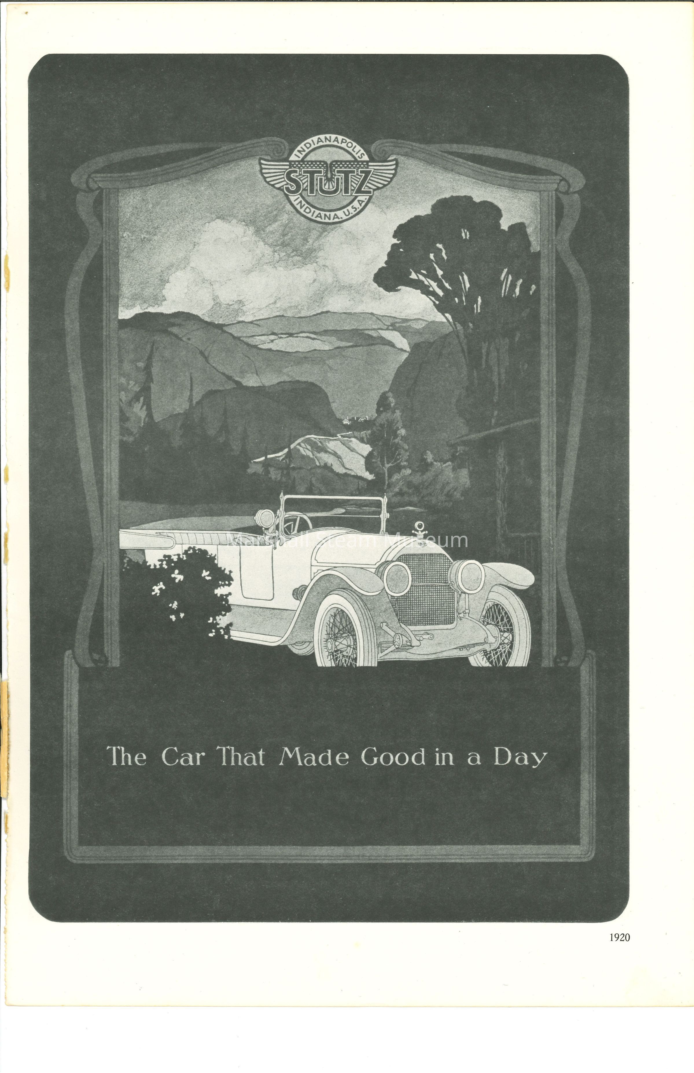 1920 advertisement for Stutz Motor scanned excerpt from "The Poster Book of Antique Auto Ads" by Howard Garrett