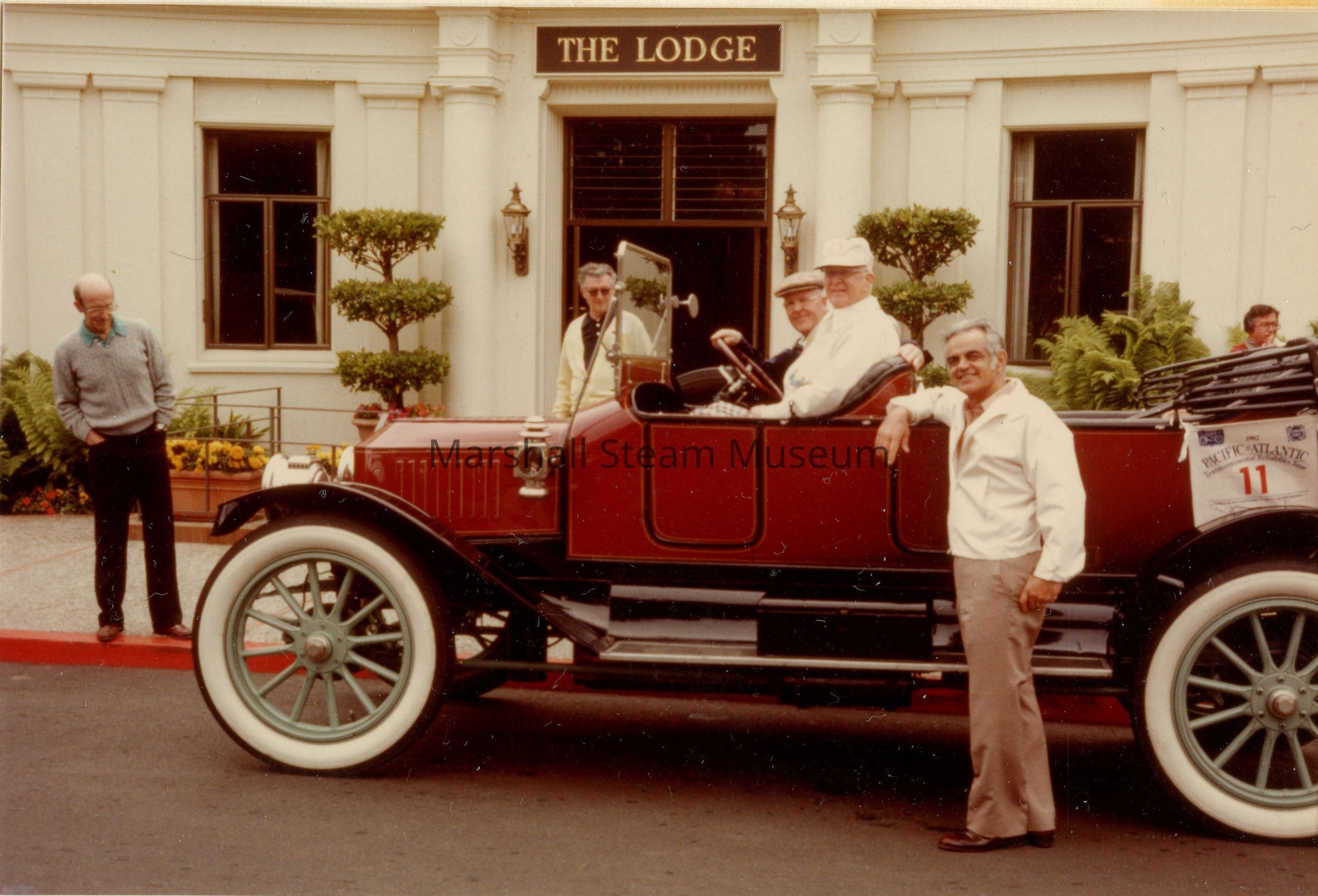 1982 Transcontinental Tour - Thomas C Marshall, Jr., Lindsay Greenplate and Anthony Rippo with the 1912 Stanley Model 87 at The Lodge, Pebble Beach, CAEntry/Object ID