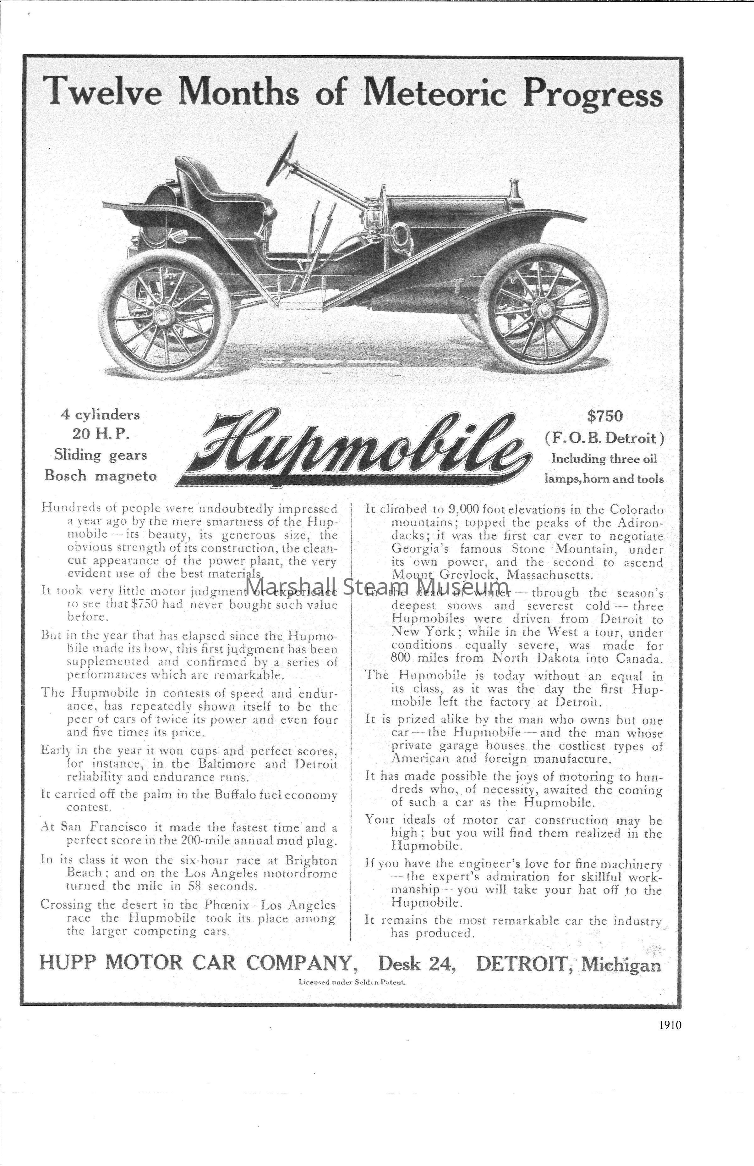 1910 advertisement for HupmobileDescription