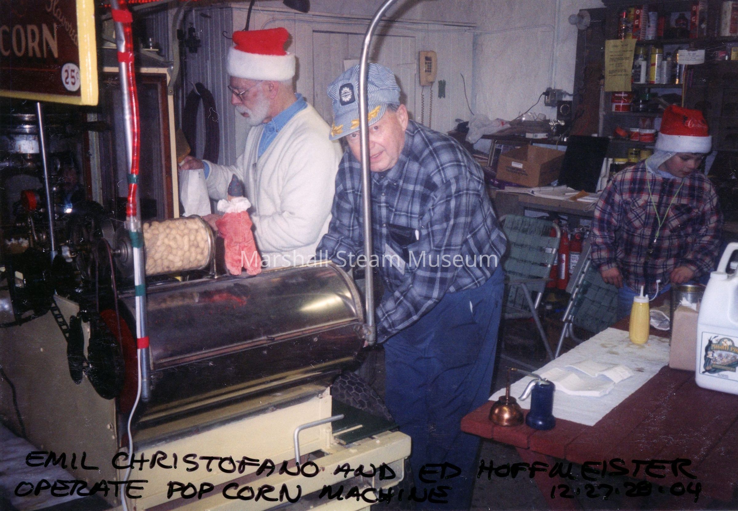 Emil Christofano and Ed Hoffmeister making popcorn at the Christmas eventPhotograph Details