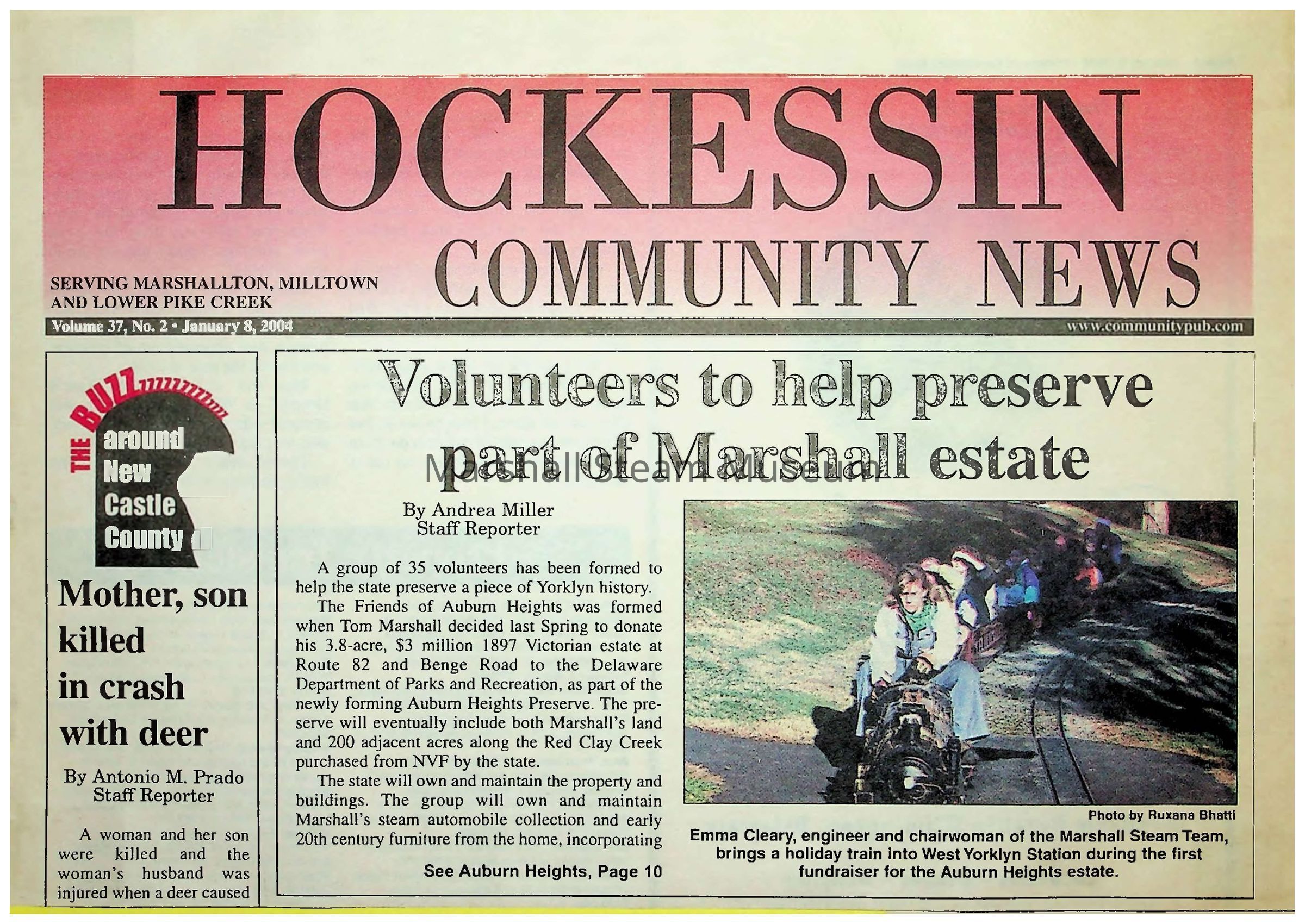Article provide details of the MArshall family donation of Auburn Heights to the State of Delaware and the formation of Friends of Auburn Heights