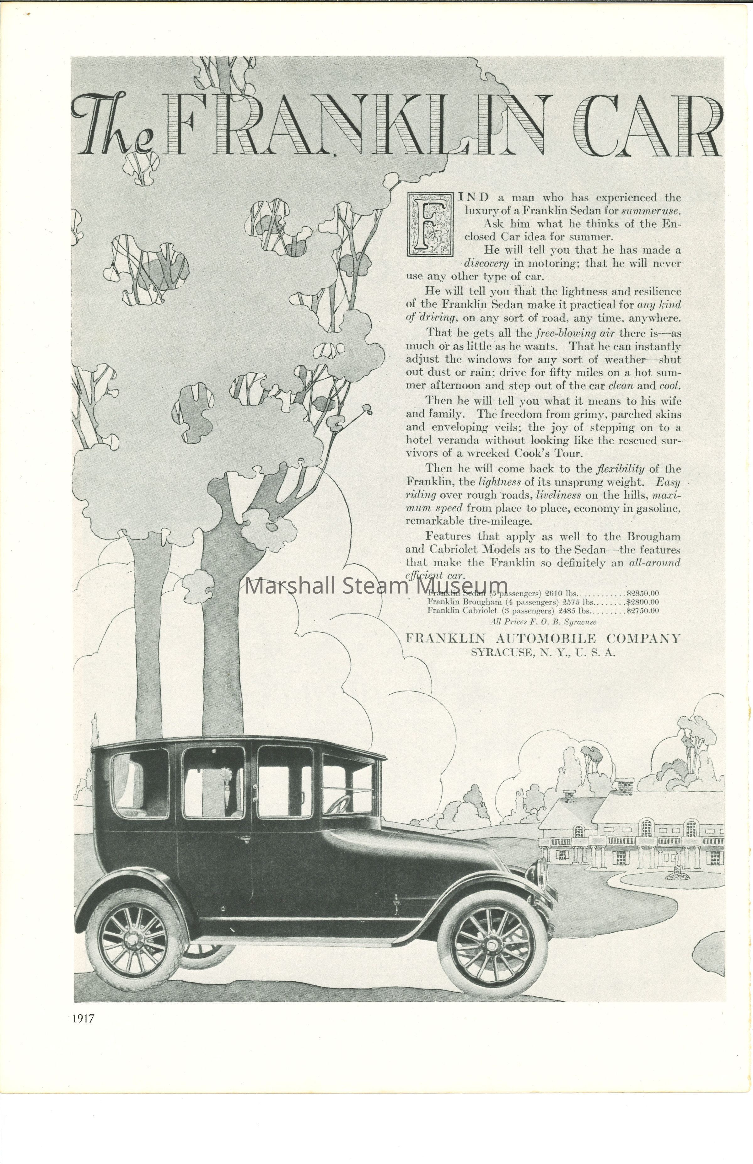 1917 advertisement for Franklin AutomobileEntry/Object ID