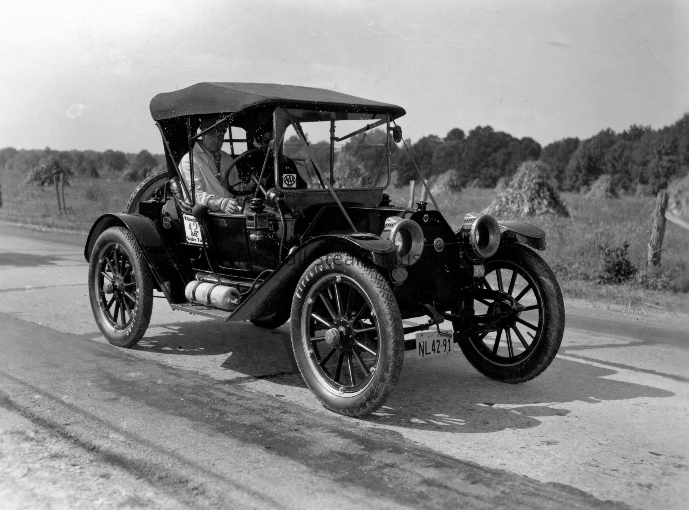 1949 Glidden Tour - Leo Peters and passenger in a 1912 BuickEntry/Object ID