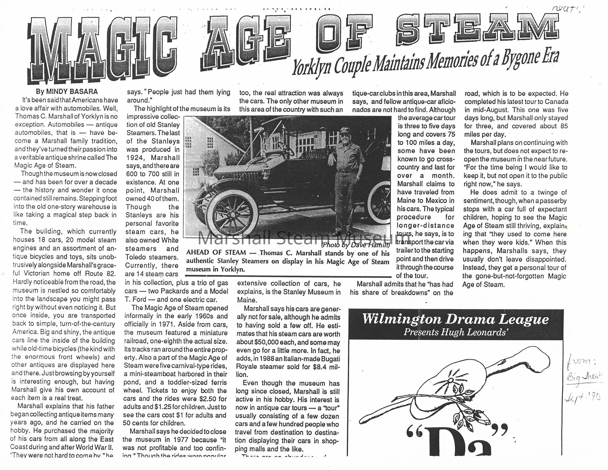 Article on Magic Age of Steam and Marshall Steam Museum by defunct local magazine "Big Shout", September 1990