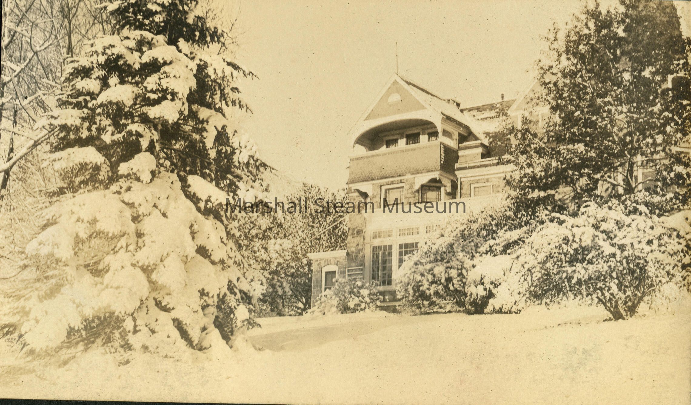 Auburn Heights mansion and trees covered in snow