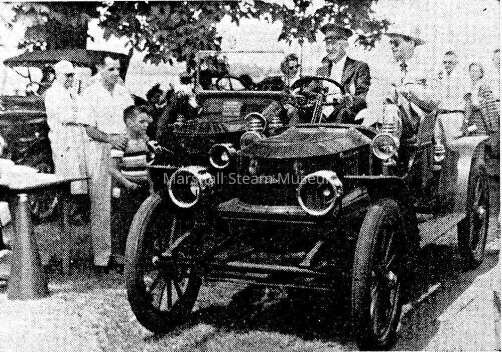 T Clarence Marshall and James Melton, AACA President, in the 1907 Stanley Roadster at the 1951 Meet at the Yorklyn Gun Club. This scan is from a photocopy of the report from the Meet.