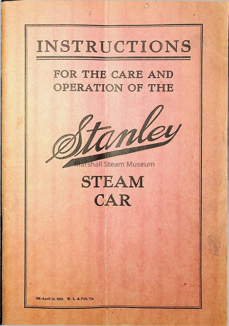 1919 Instructions for Care and Operation of the Stanley Steam Car