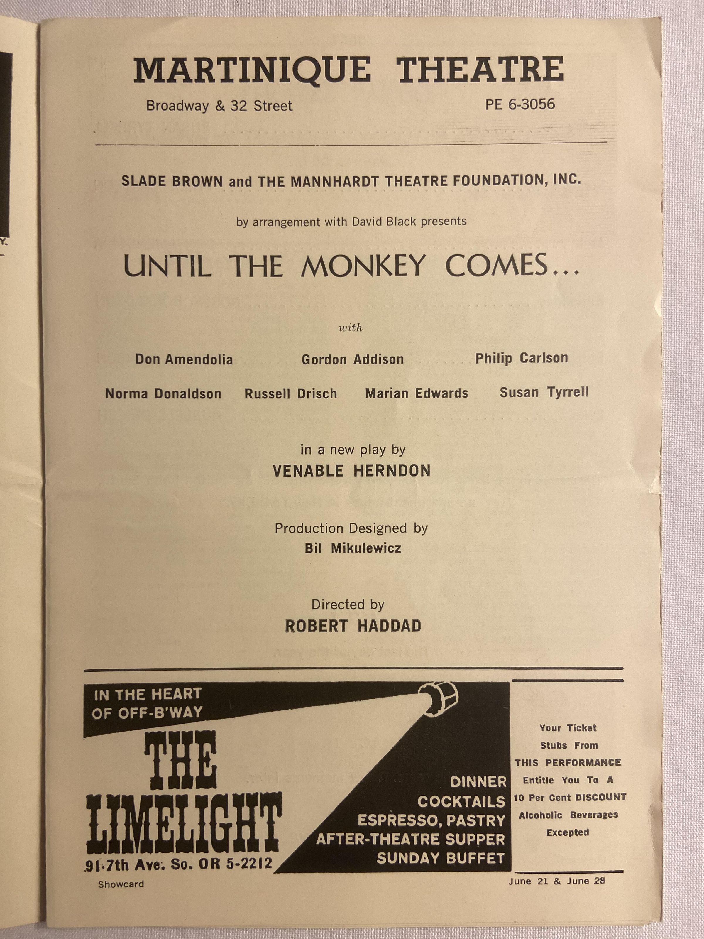 Collection of multiple theater programs & playbills performed in the 1960's at the Martinique Theatre located in the Hotel Martinique at 32nd & Broadway.Collection