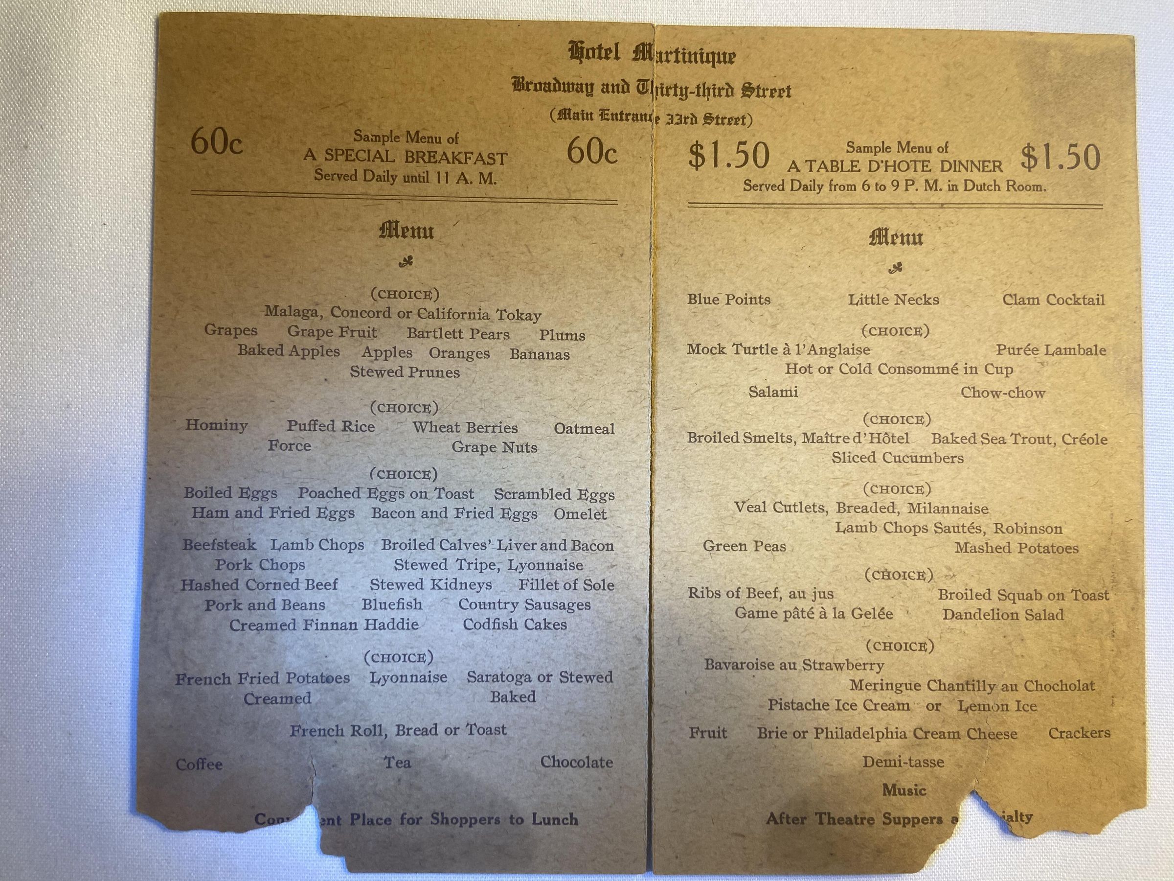Martinique Restaurant Menus