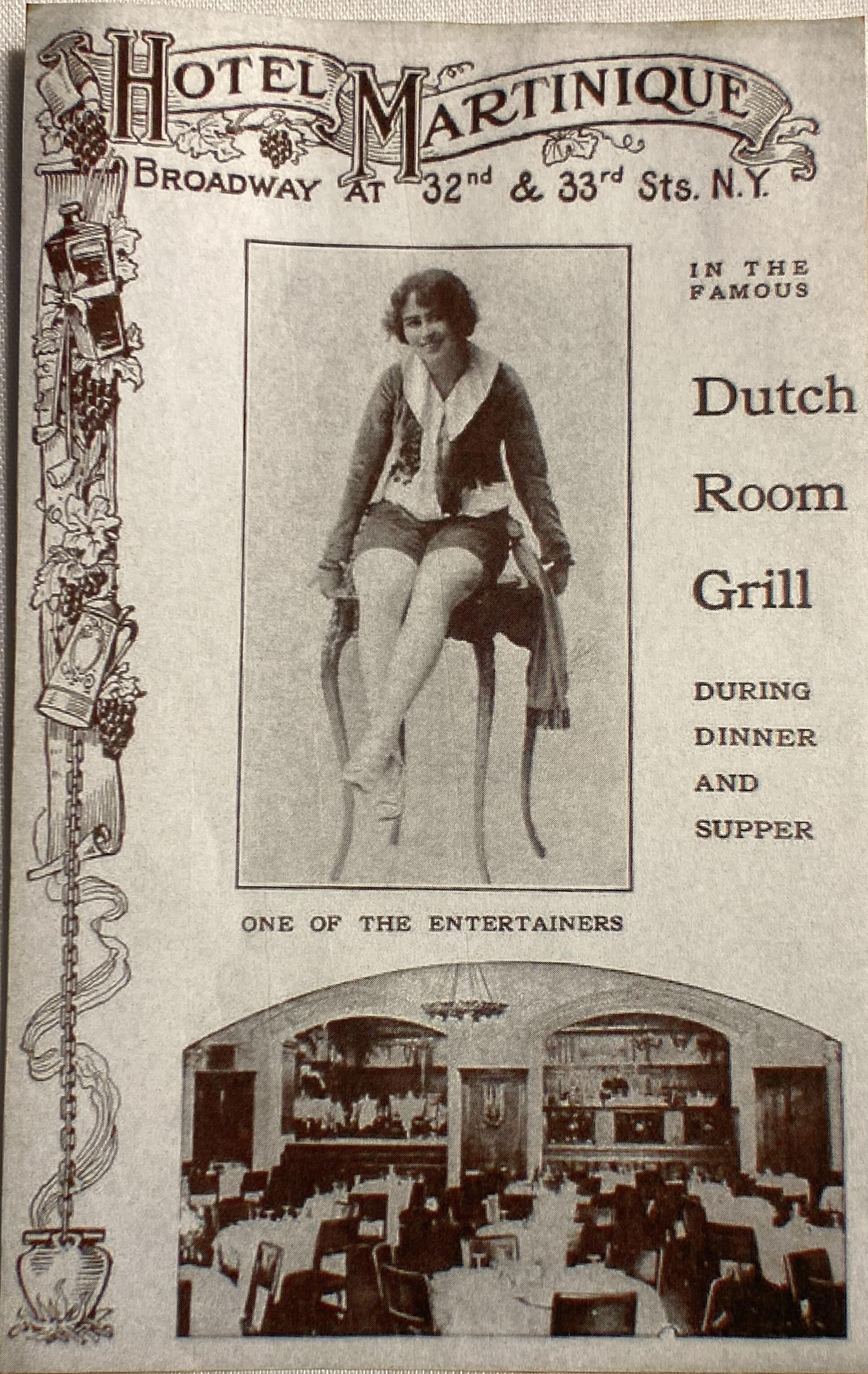 The Dutch Room: Vaudeville Entertainment & Dining: Hotel Martinique NYCCataloged By